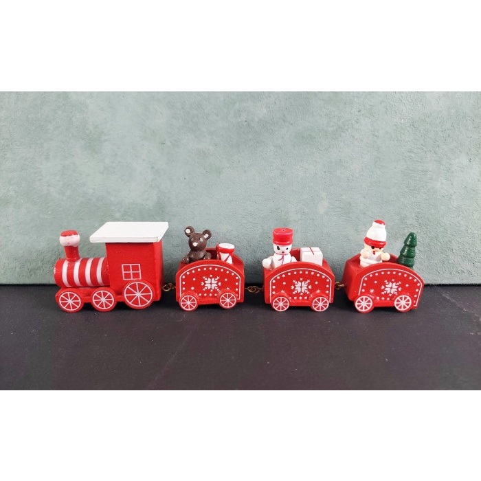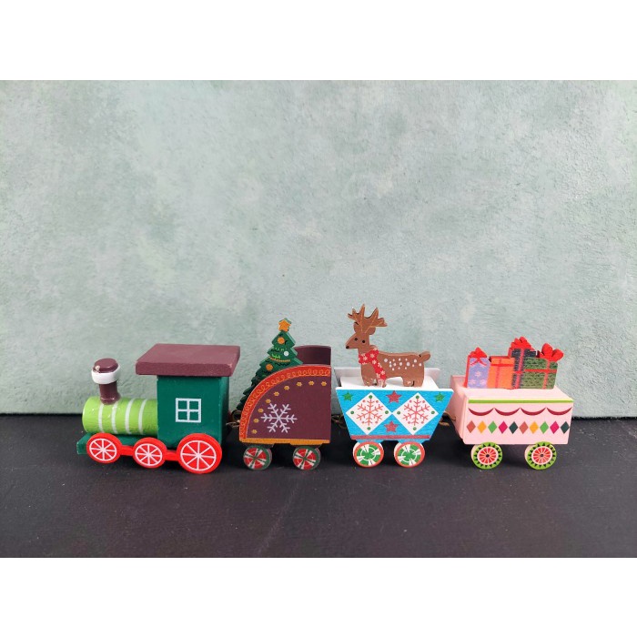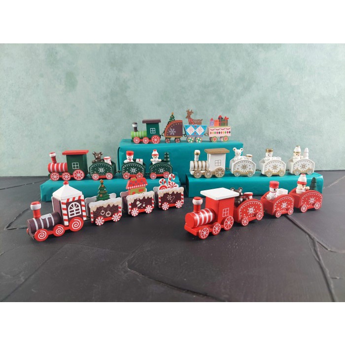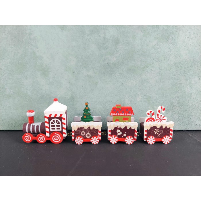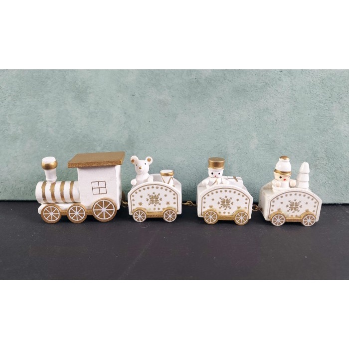 Hiasan Natal - Kereta Api Kayu Kado Natal; 1 Pack 1 Set 1 Pack - Kereta Putih
