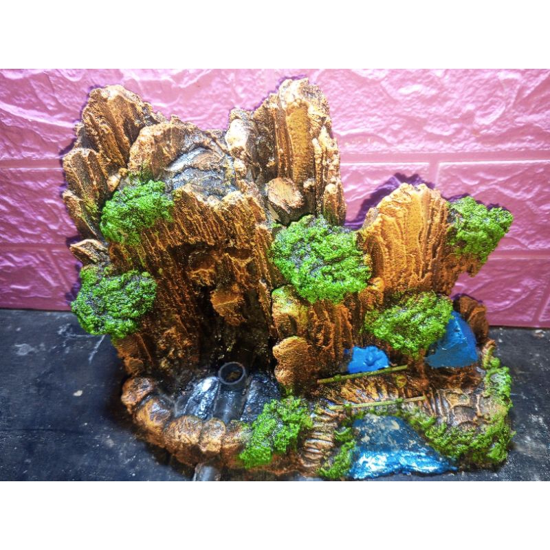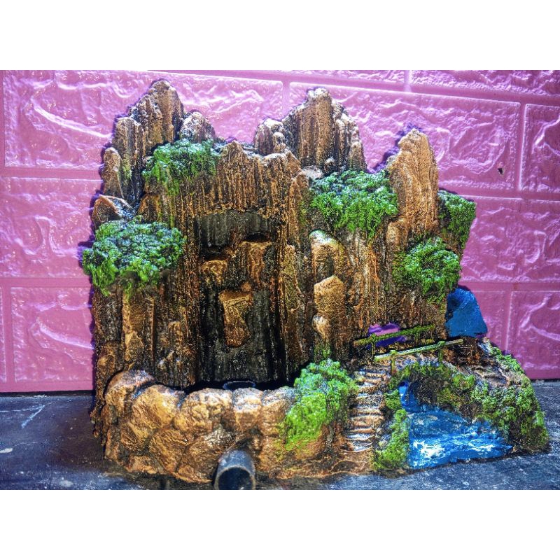 Hiasan aquarium tebing air terjun std20 variasi satu sisi aquascape instant