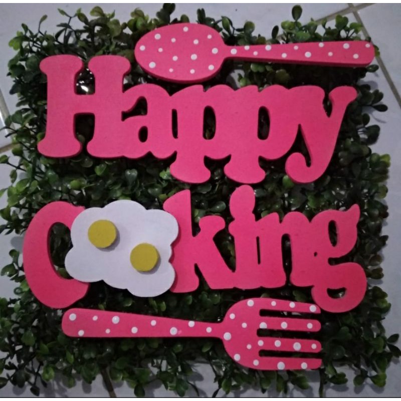 Hiasan dinding Happy cooking kayu ukuran jumbo unik lucu murah