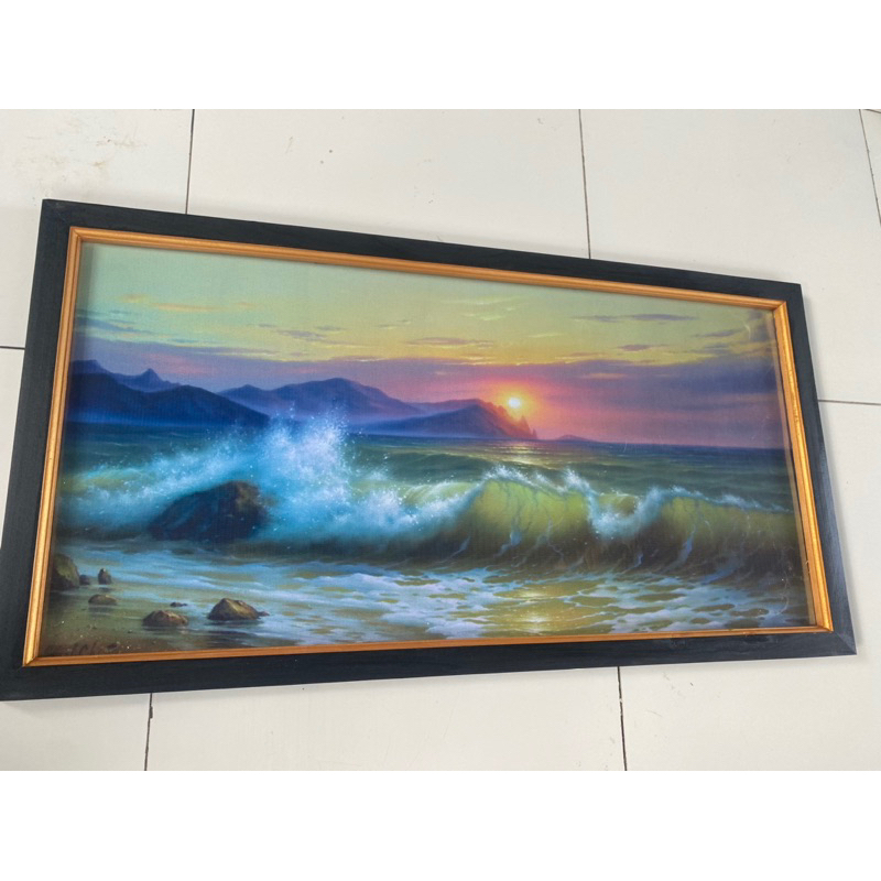 Hiasan dinding Lukisan ombak laut indah dan sunset plus bingkai uk:50cm x 100cm