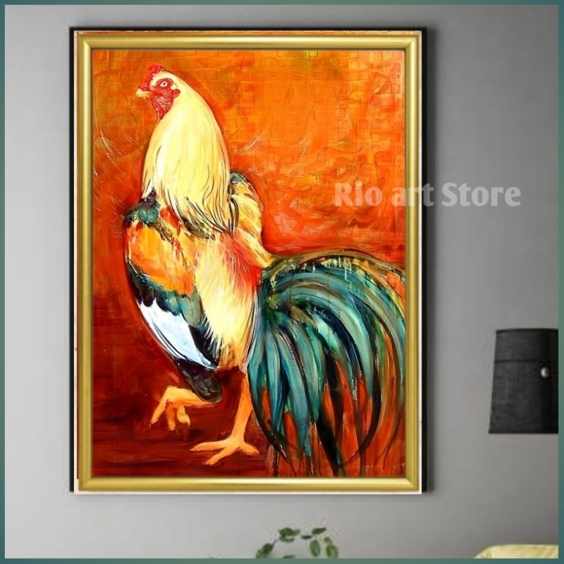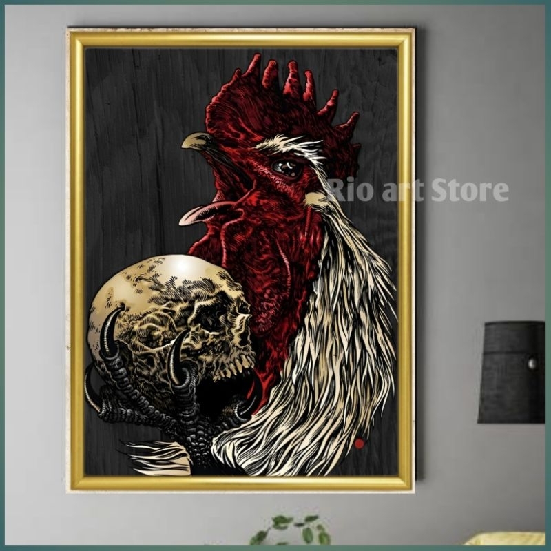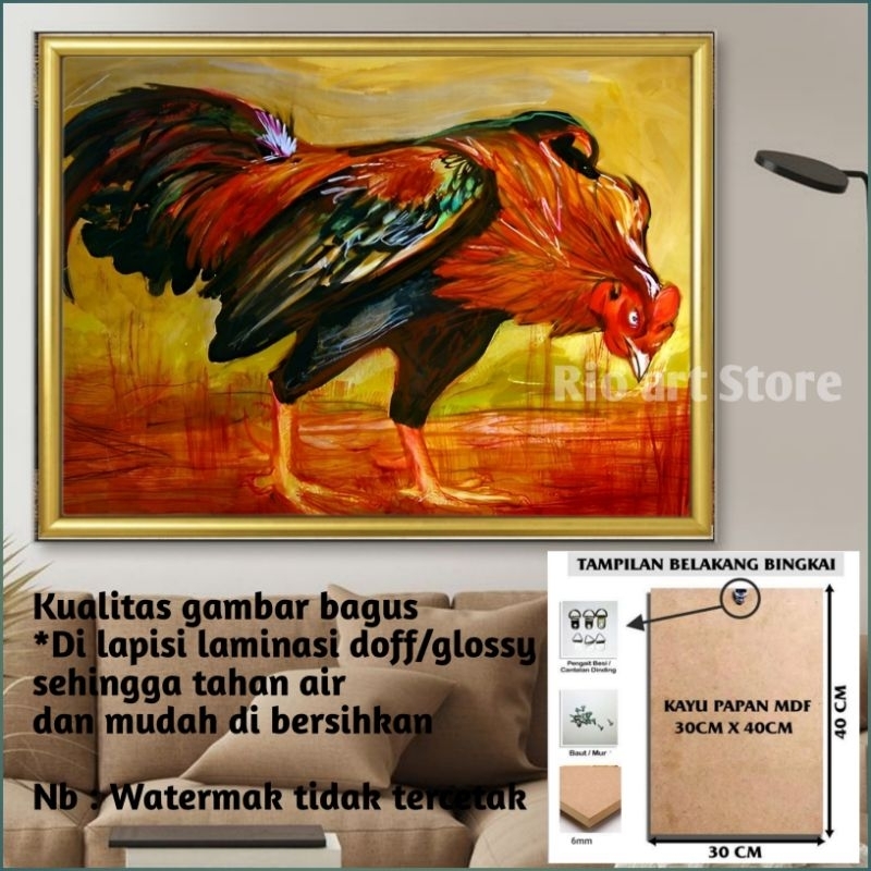 Hiasan dinding bahan papan kayu mdf poster ayam jago untuk walldekor atau pajangan dinding