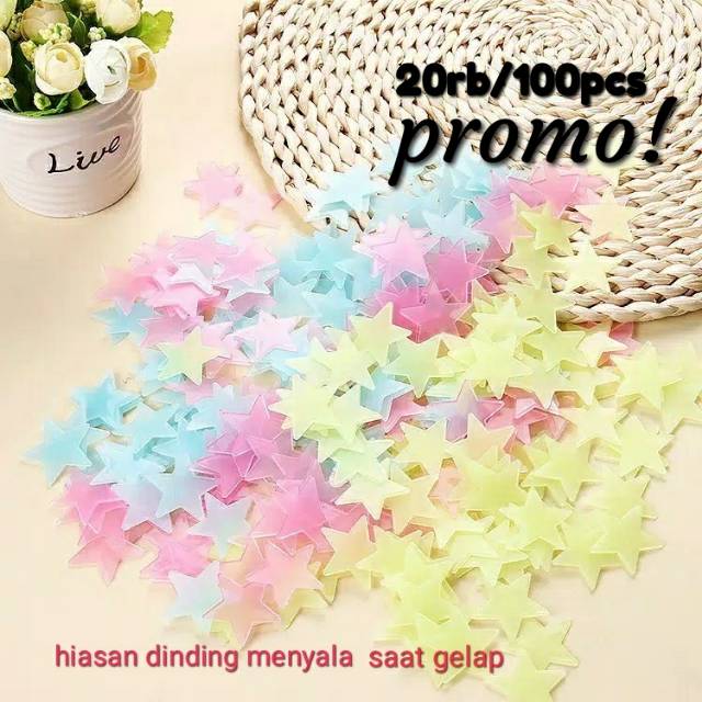 Hiasan dinding bentuk bintang glow in the dark