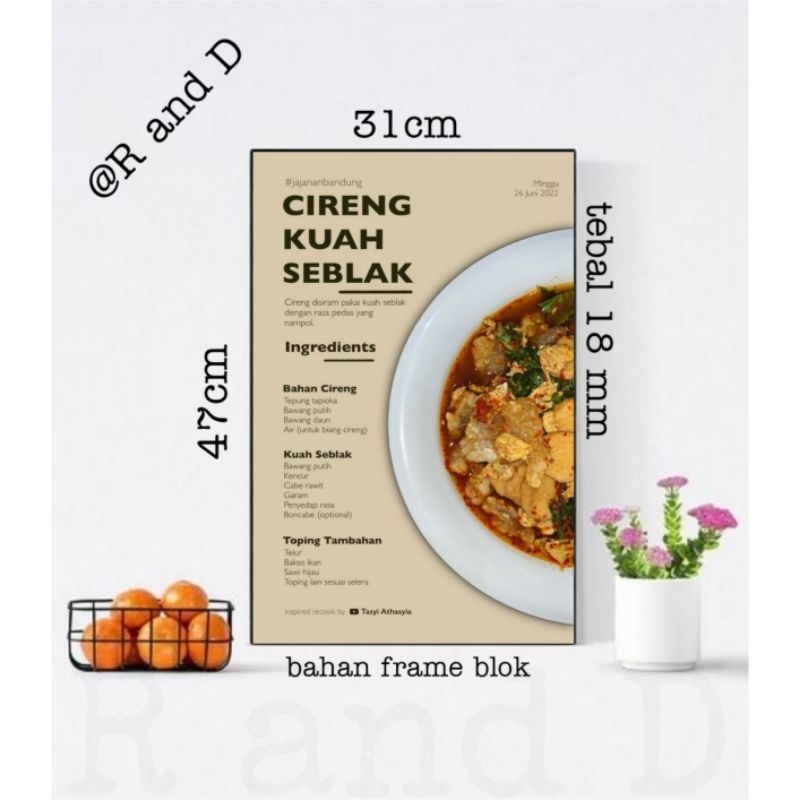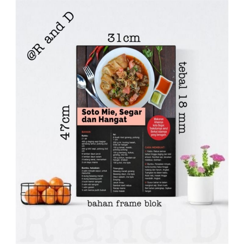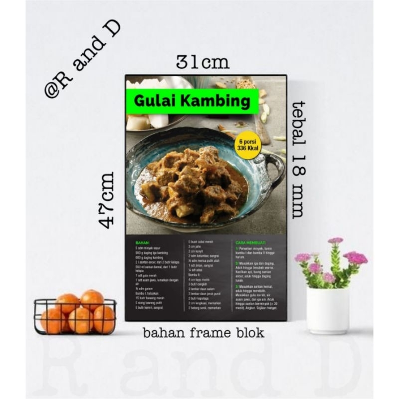 Hiasan dinding dapur resep masakan, poster makanan ukuran 47x31, dekorasi dinding aesthetic, dekorasi hiasan cafe, hiasan restoran, hiasan rumah makan, gambar menu makanan, gambar resep masakan, bingkai foto tanpa kaca, fgura kayu mdf