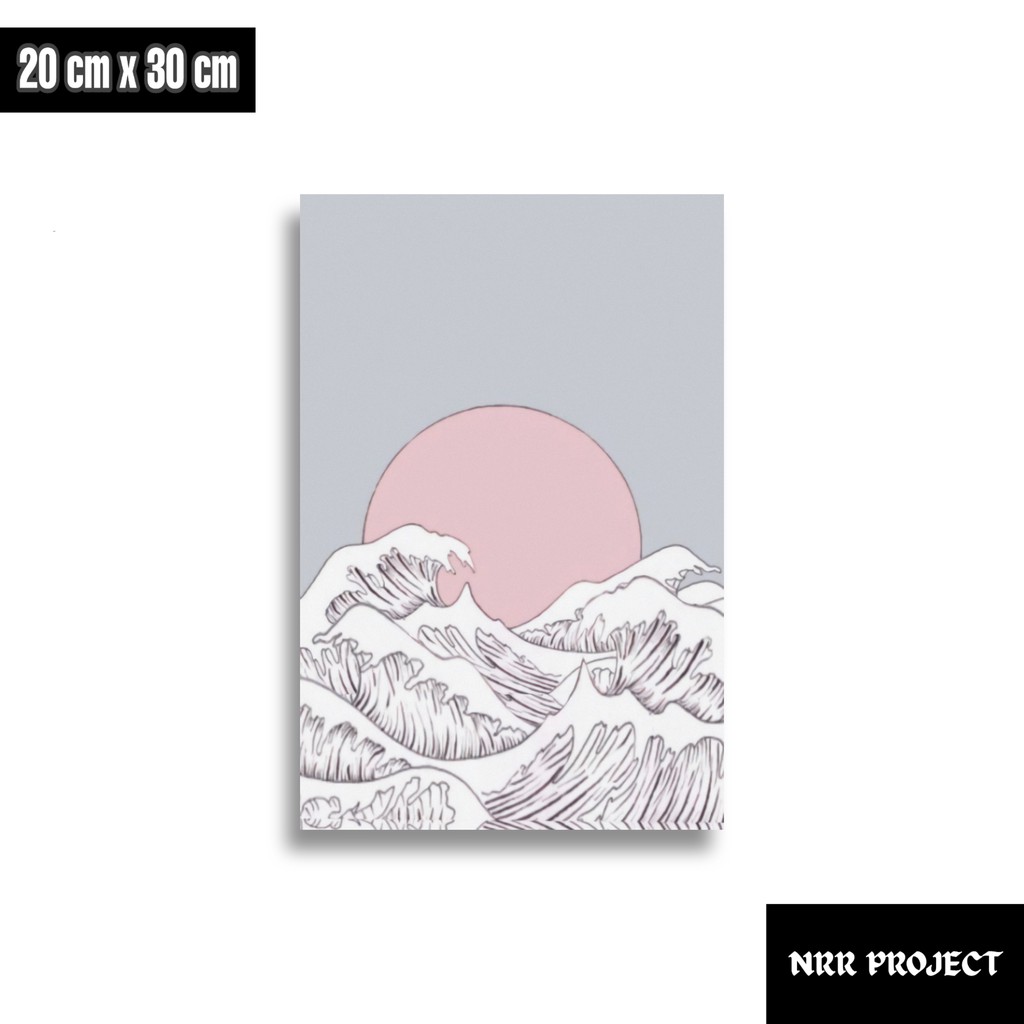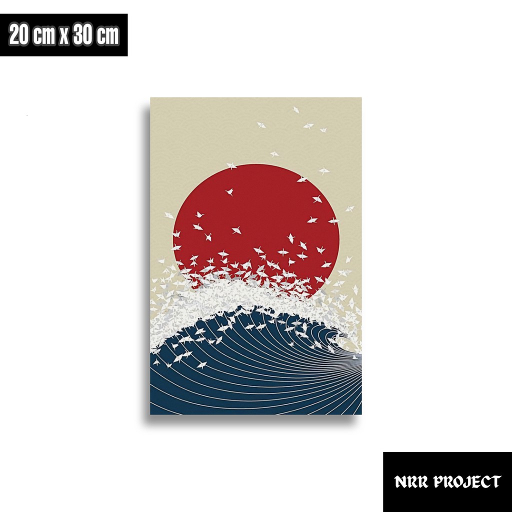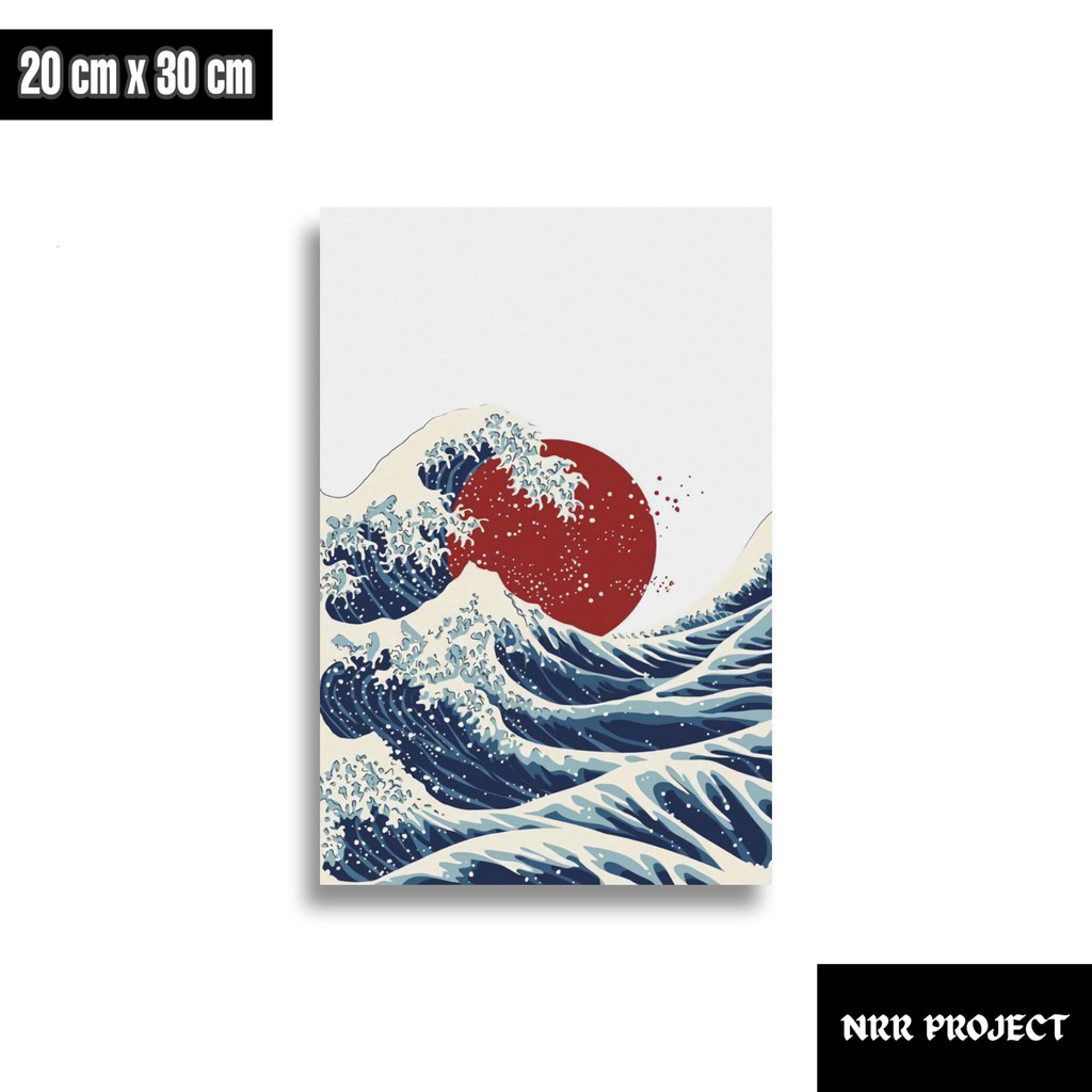 Hiasan dinding dekorasi dinding pajangan rumah wall decor poster kayu Ombak Jepang art 2