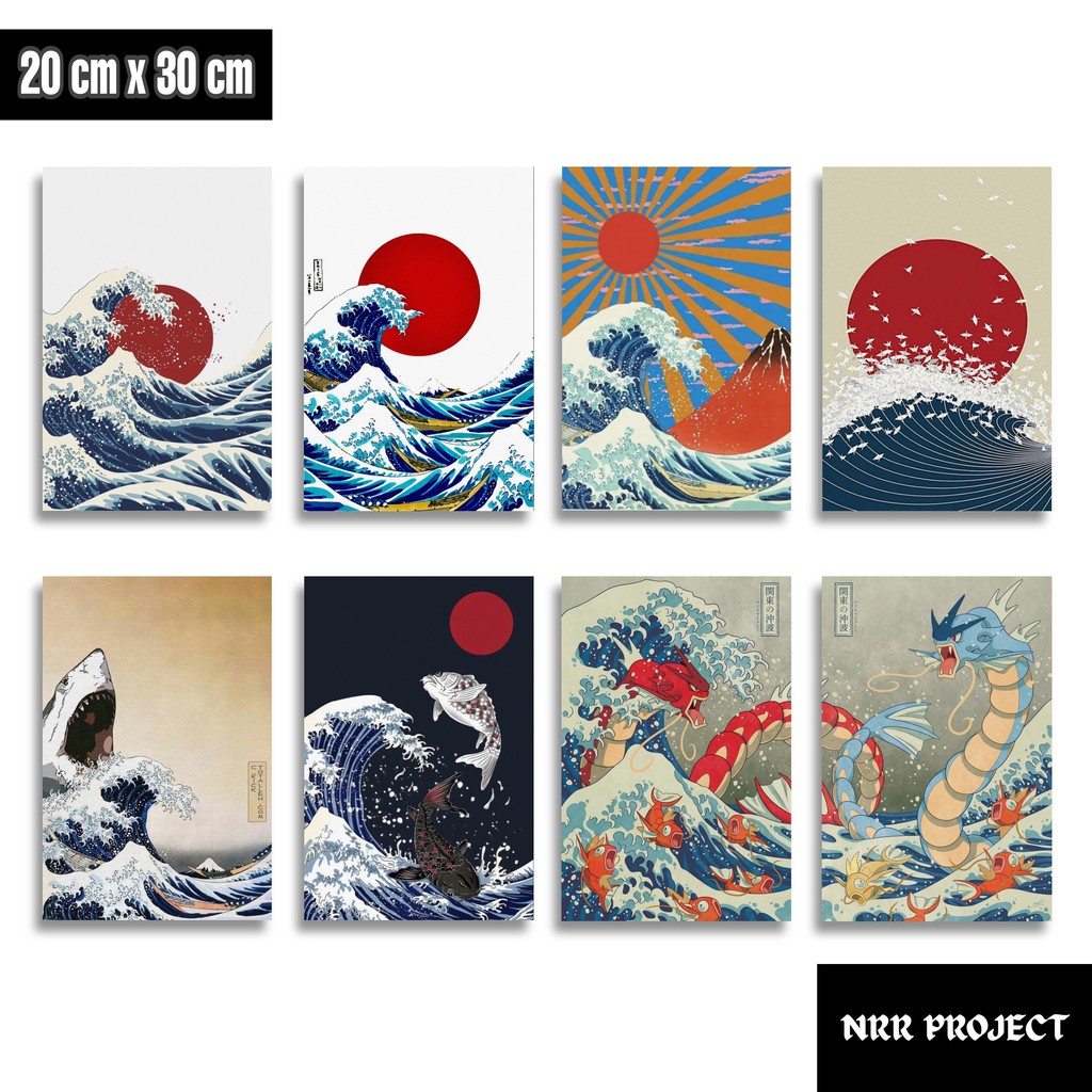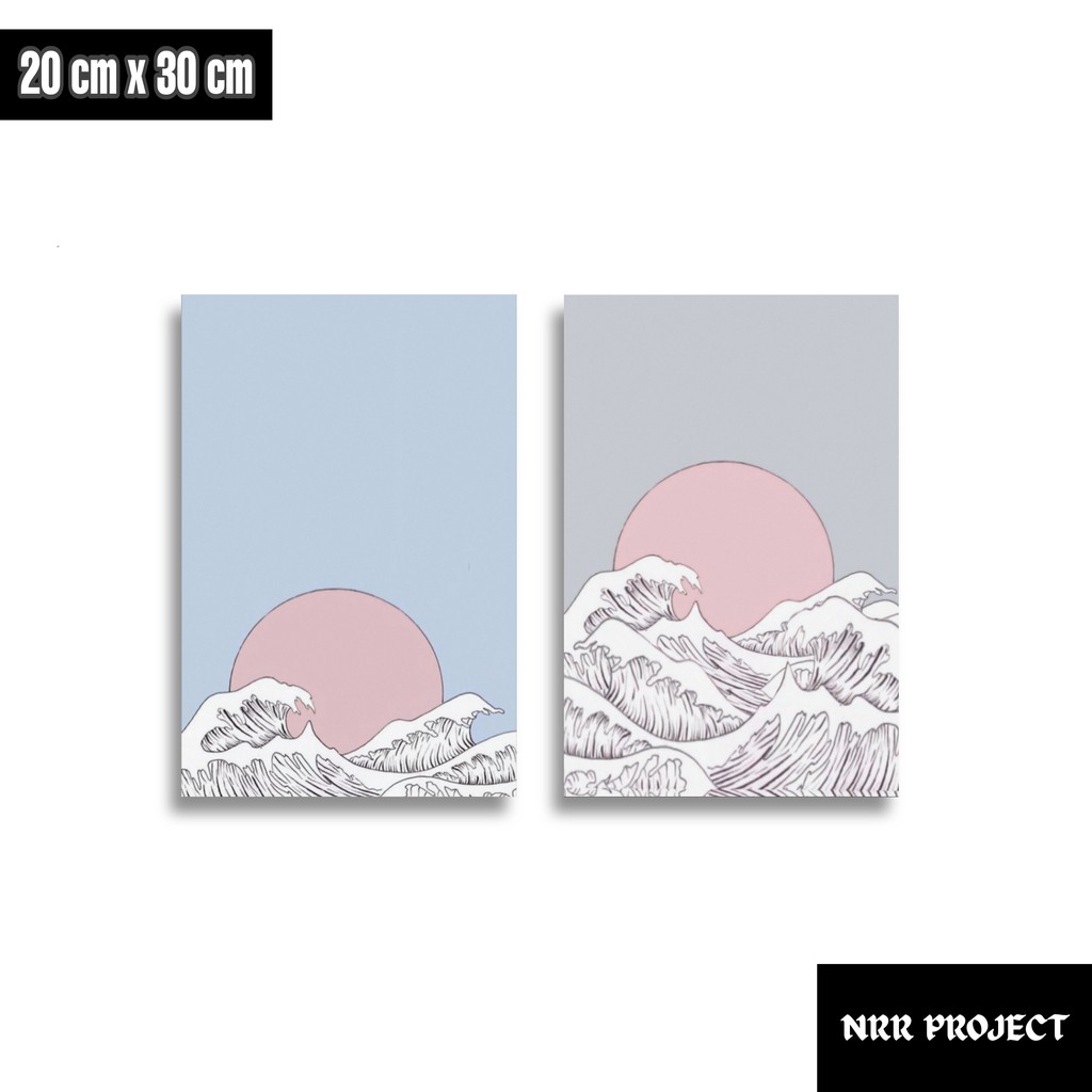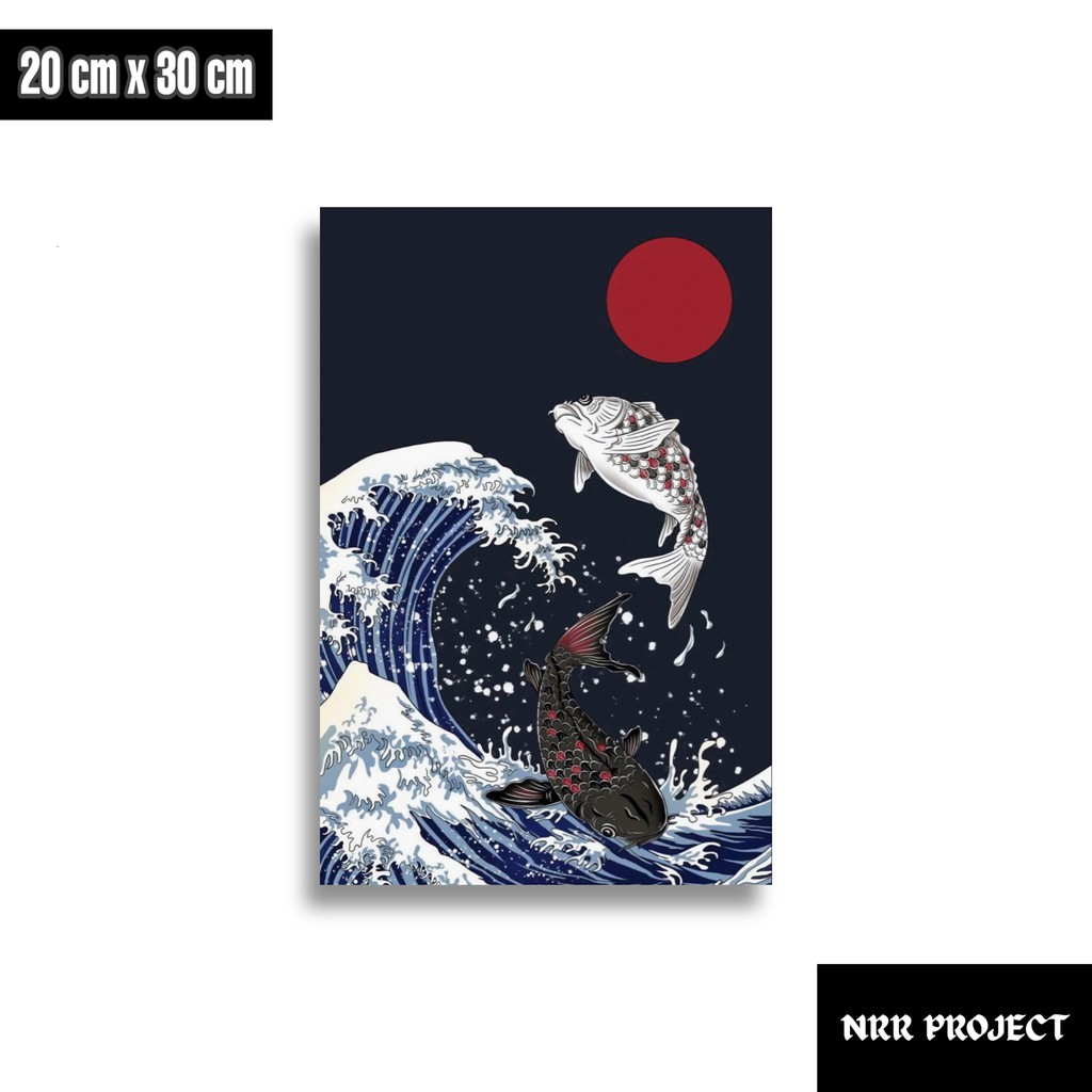 Hiasan dinding dekorasi dinding pajangan rumah wall decor poster kayu Ombak Jepang art 2