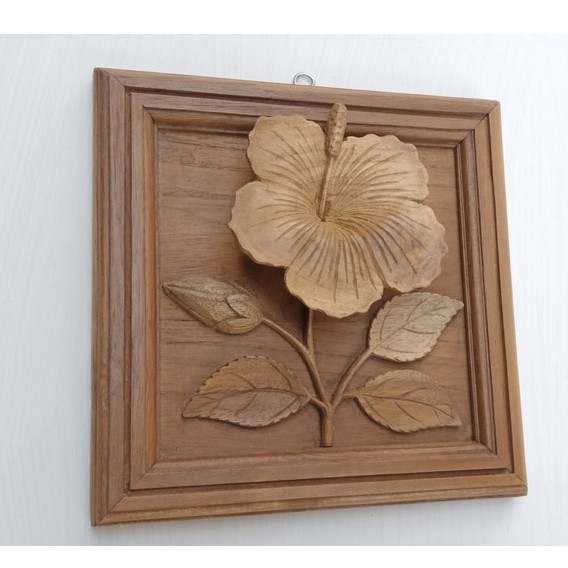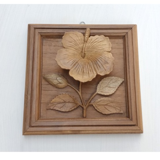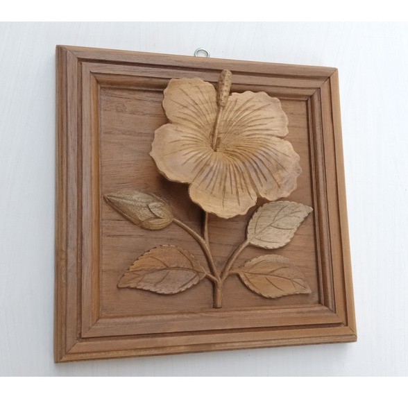 Hiasan dinding kayu, dekorasi dinding kayu , ukiran bunga sepatu, asli Jepara.