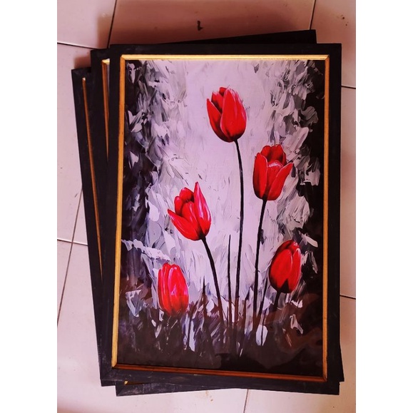Hiasan dinding lukisan cetak Bunga tulip plus bingkai ukuran 65x45