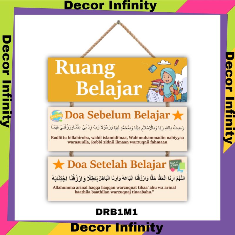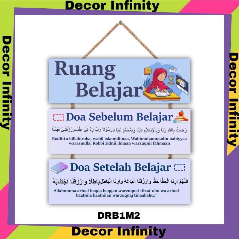 Hiasan dinding wall decor RUANG BELAJAR 30x30 cm 3 susun gantungan edukasi sekolah doa sebelum dan sesudah belajar