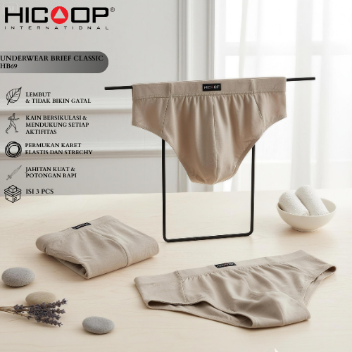 Hicoop - Underwear Brief Classic - Celana Dalam Pria - Hitam/Coklat/Abu - Isi 3 Pcs - HB69