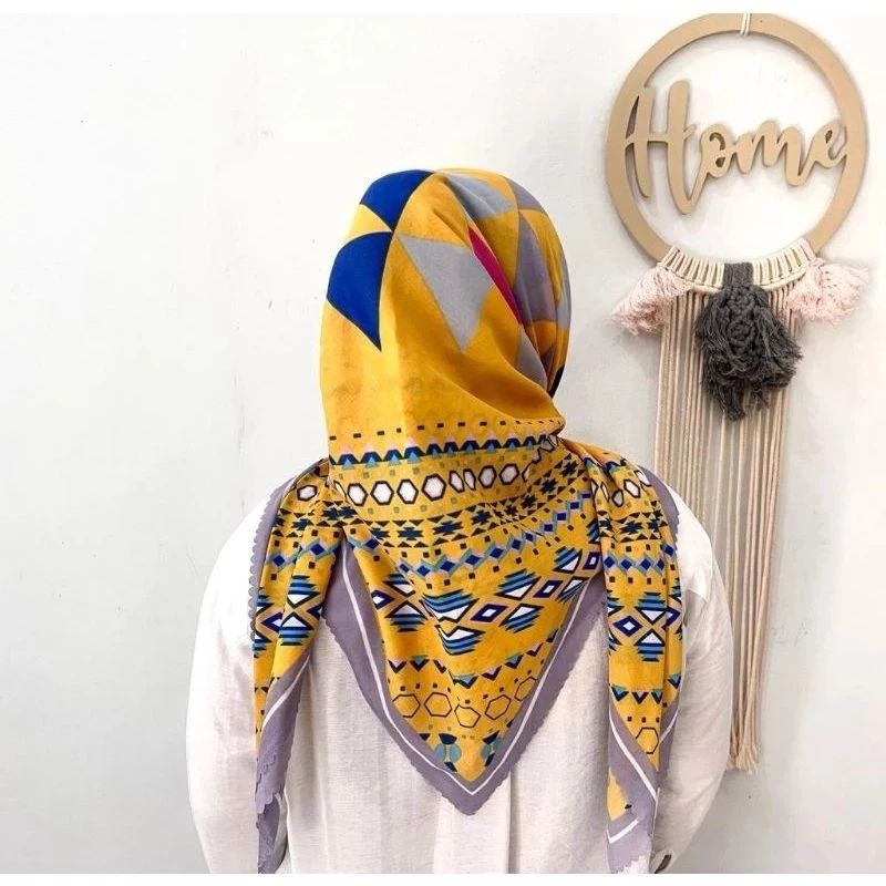 Hijab Segi empat motip series kuning Terlaris/Kerudung Segiempat motif lasser cut