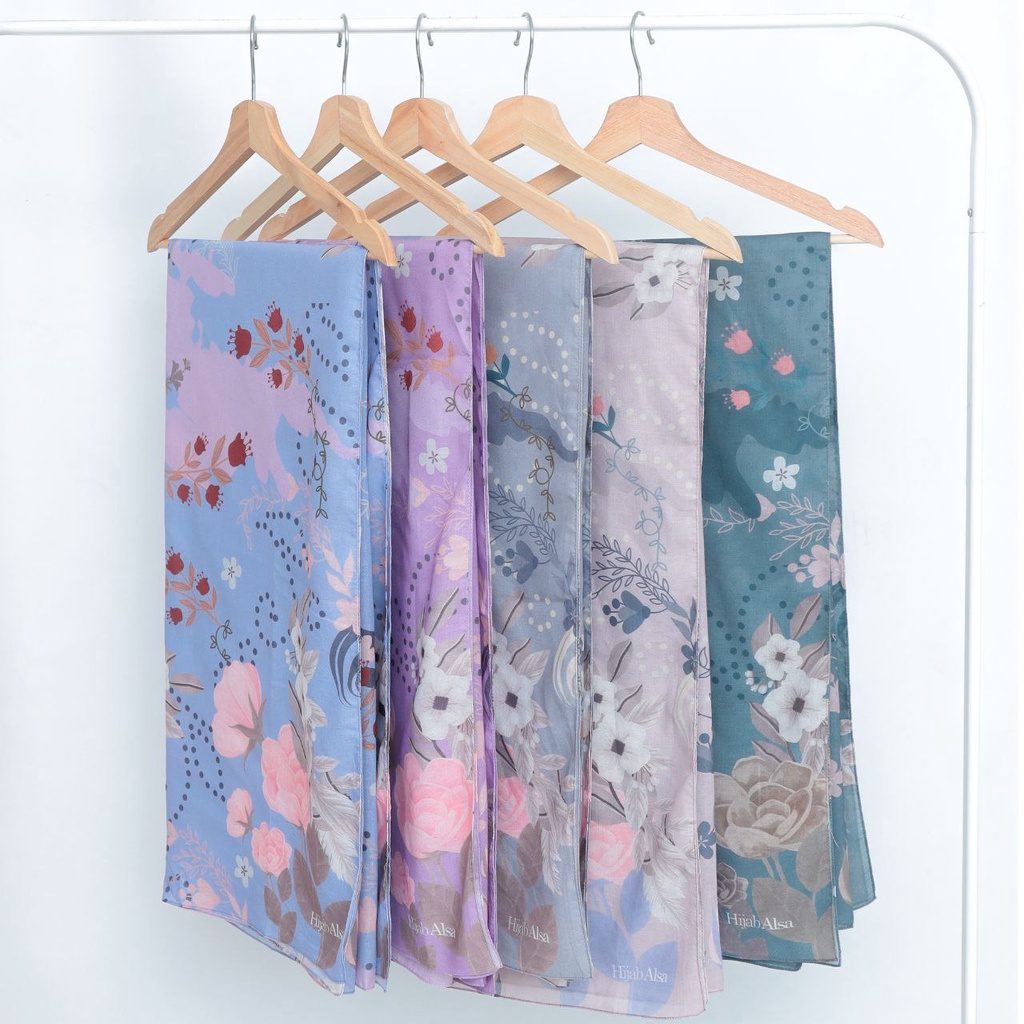 Hijab Voal Motif Premium Scarf Jilbab Segi Empat Syari Motif Printing by Hijab Alsa Koleksi Terbaru