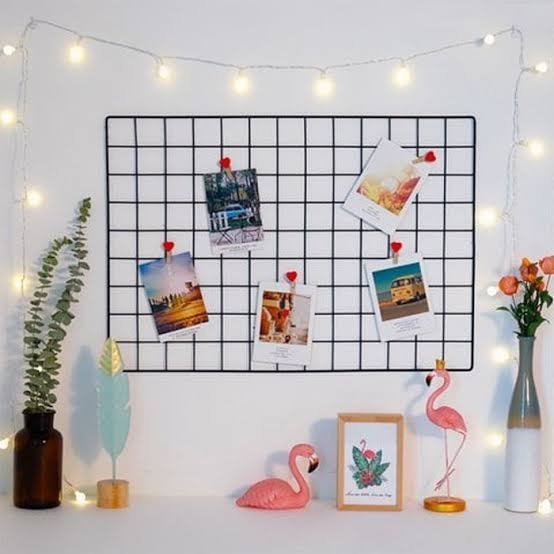 Hijang 52x35 cm Wire Mesh Grid Wall Hiasan Dinding Memo Foto Organizer