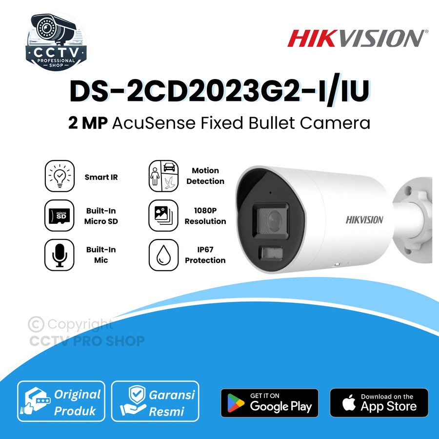 Hikvision IP Camera DS-2CD2023G2-I/IU 2MP AcuSense Fixed Bullet Network Camera