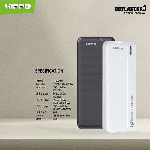Hippo Powerbank Outlander 3 PD 10000Mah Super Fast Charging