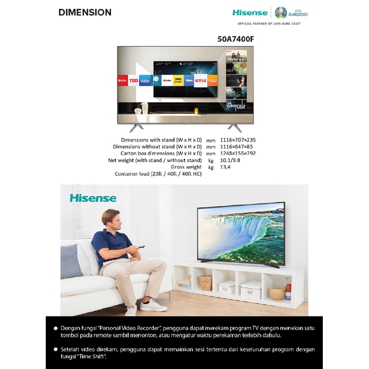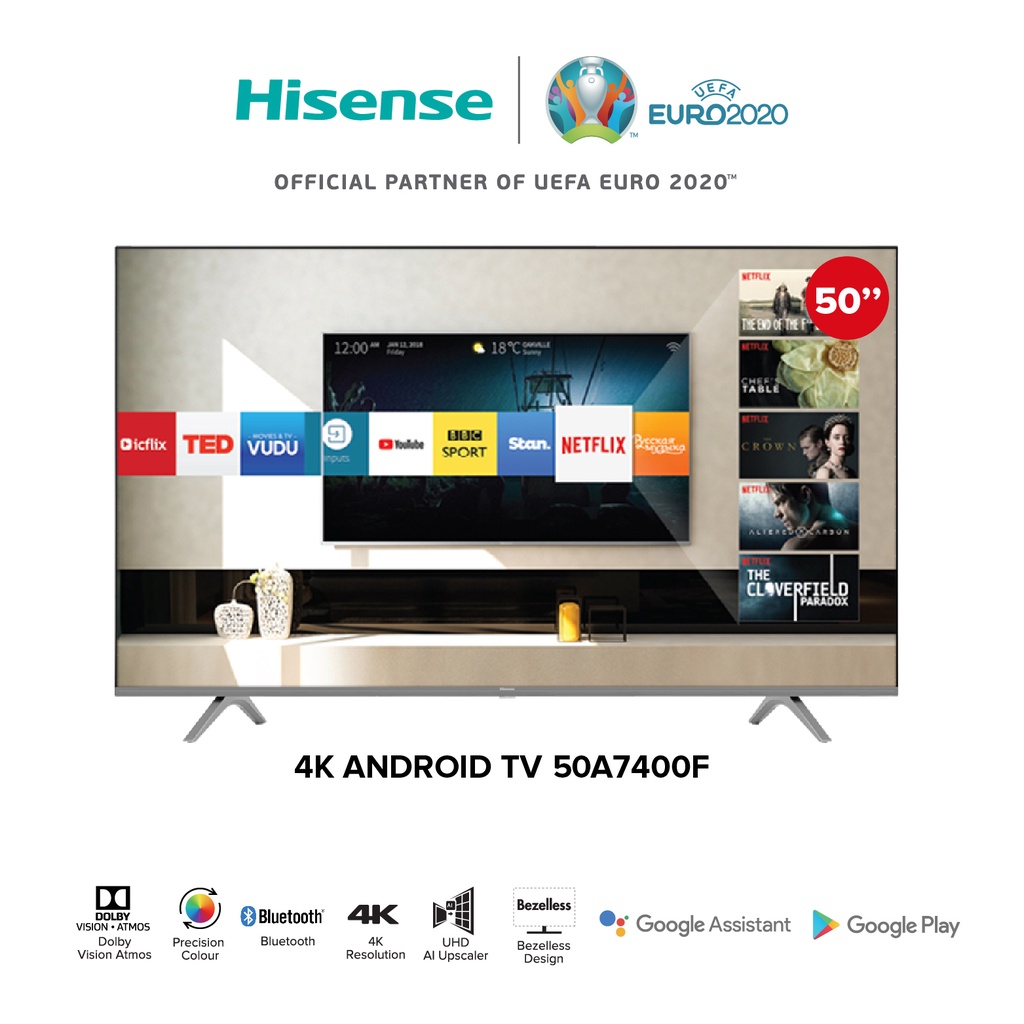 Hisense 50 inch 4K UHD Android Smart TV - Precision Colour - Bezelless Design - Dolby Audio - Bluetooth - USB - HDMI (Model 50A7400F)