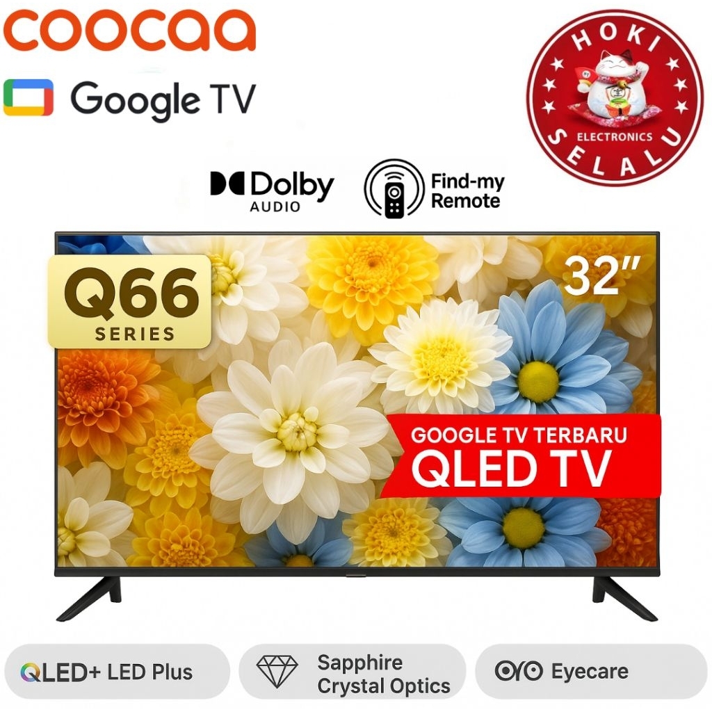 Coocaa Smart Google TV 32 Inch 32Q66 2K Qled Quantum Dot LED HDR 10 Digital Eye Care Sapphire Crystal Optics Dolby Audio Voice