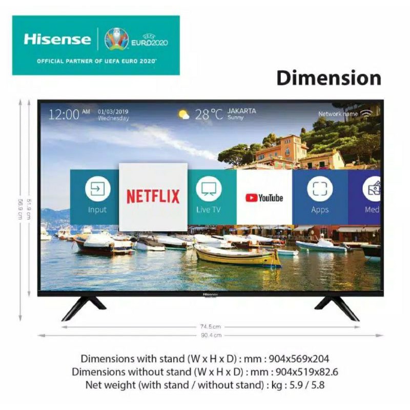 Hisense Smart Digital LED TV 40 Inch - Wifi - Slim (Model: 40E5600EX)