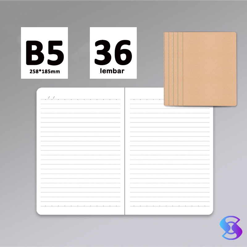 Hitam/Kraft A5/B5 Notebook Buku 36 Lembar lined/Grid/Blank -Suning Mall