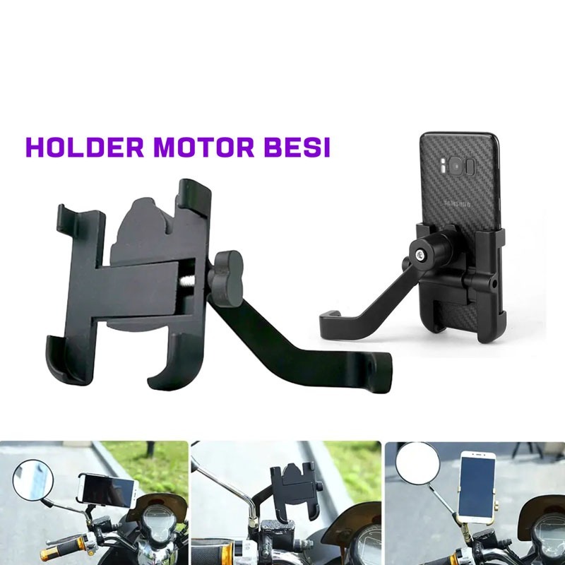 Holder HP Motor Handphone Holder Spion Aluminium Alloy Besi - Phone Holder hp Motor Spion dan Stang Universal Full Besi Holder Motor Besi Spion Universal