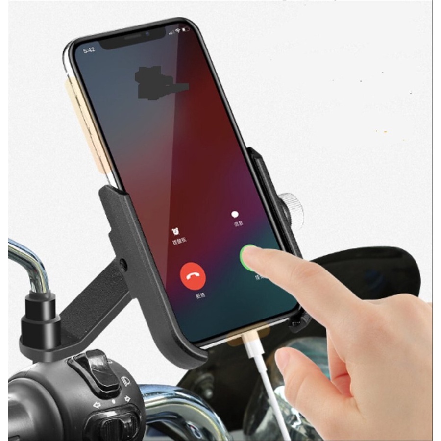 Holder Handphone Motor Phone Holder Spion Sepeda Motor Universal CNC Alumunium Tidak Karat Tahan Getar