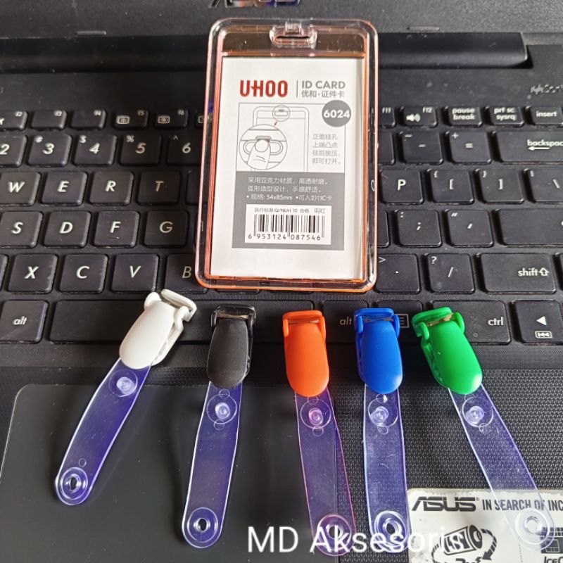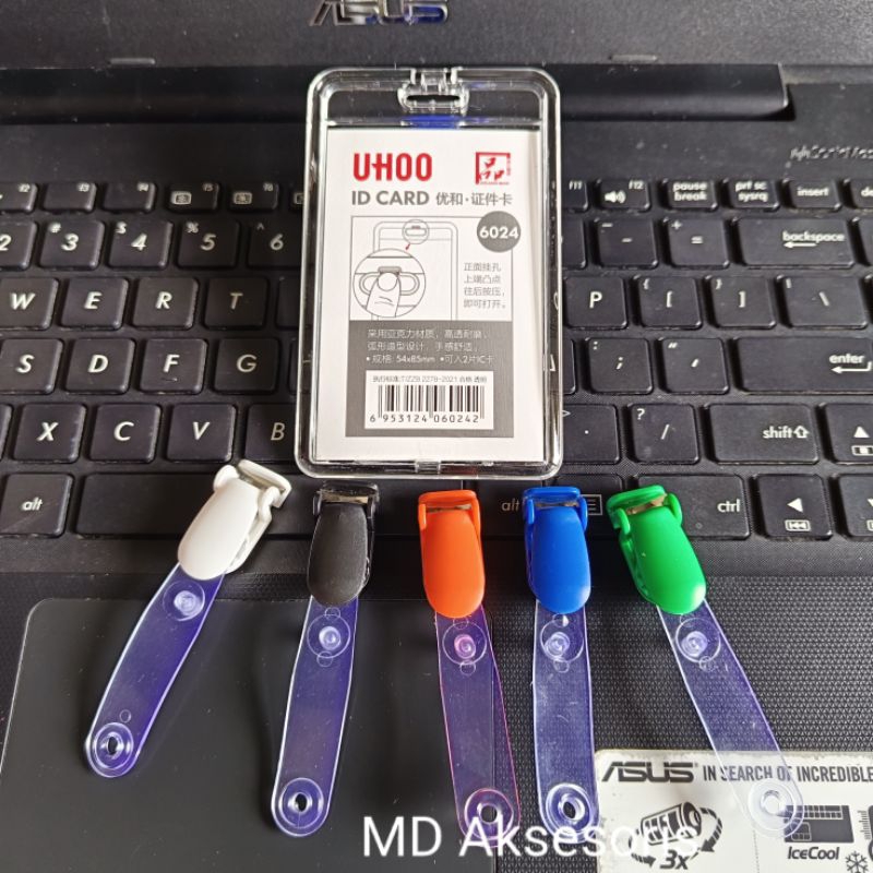 Holder Id Card Transparan Id Card Akrilik Photocard Potrait Landscape + Klip Id Card Jepitan Id Card