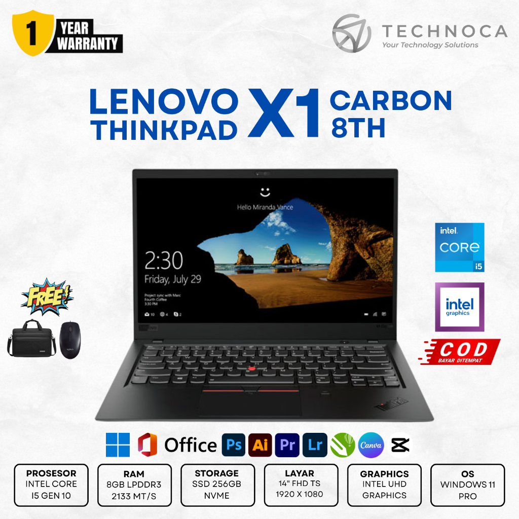 LENOVO THINKPAD X1 CARBON 8TH I5 GEN 10 RAM 8GB SSD 256GB TOUCHSCREEN GARANSI 1 TAHUN