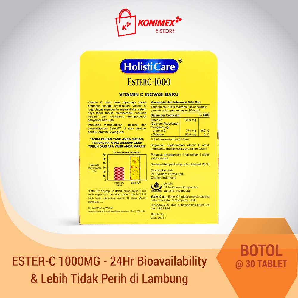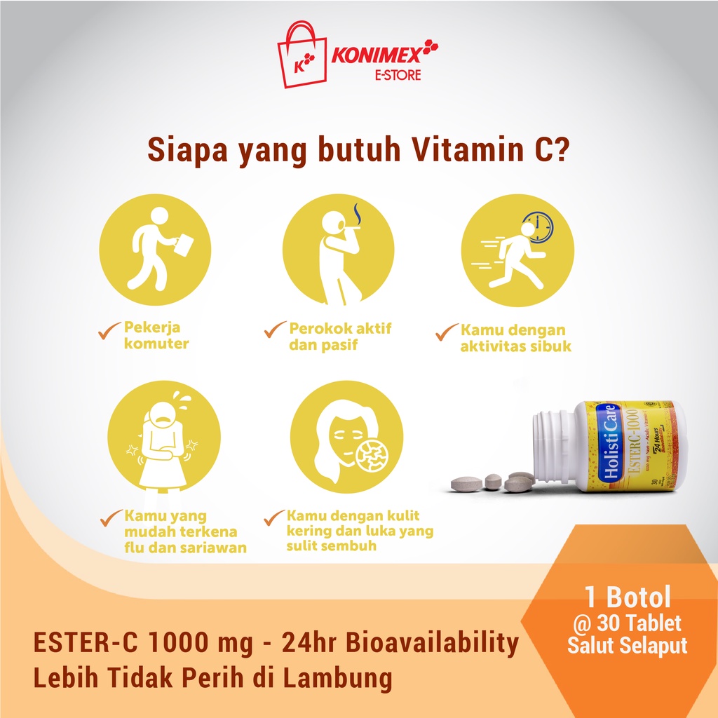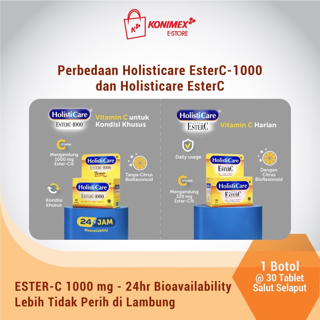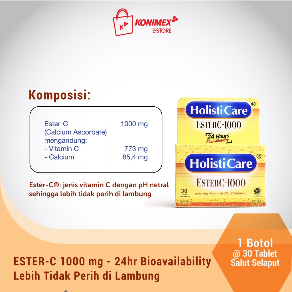 Holisticare EsterC 1000 - 24jam Bioavailability dan Lebih Tidak Perih di Lambung