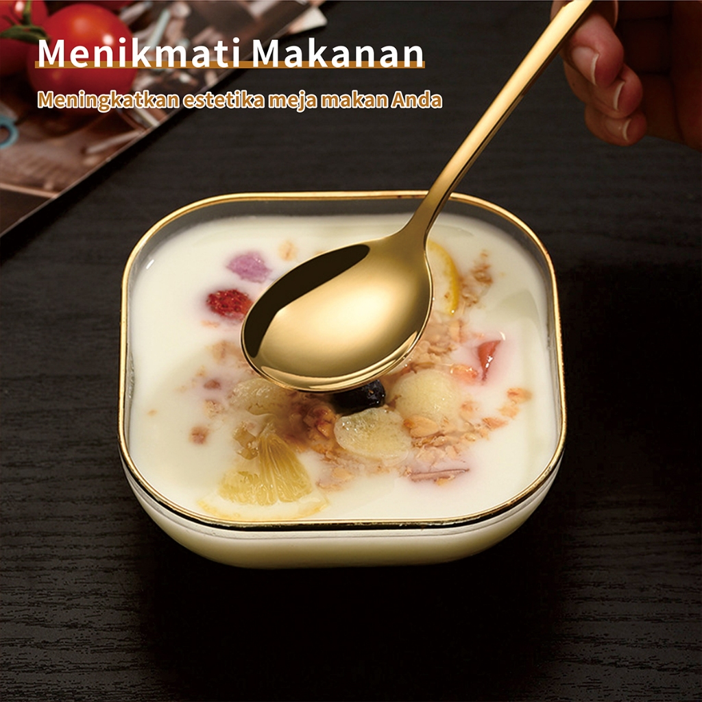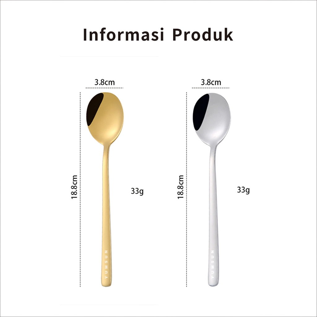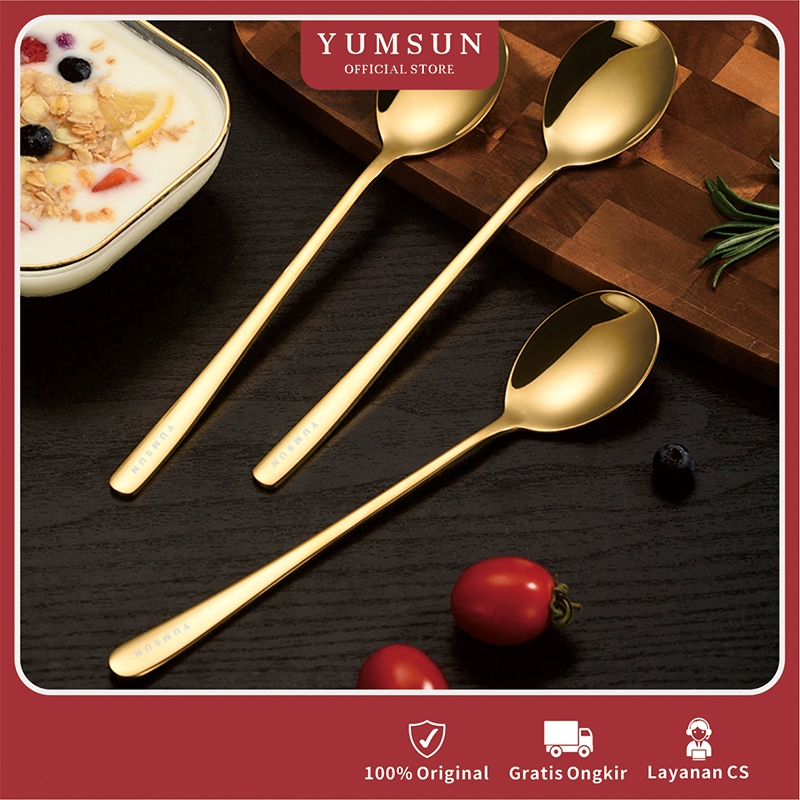 YUMSUN Sendok Makanan Penutup Korea /304 Sendok Stainless Steel / Sendok Kopi Gagang Panjang /Sendok Pengaduk Menebal/sendok gold
