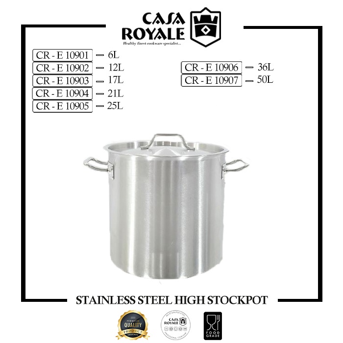 Casaroyale Deep Stockpot Stainless Steel 443 Grade 25 Liter CR-E 10905