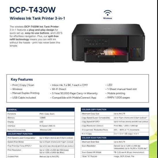 BROTHER DCP-T230 DCP T430W Printer Ink Tank Colour AIO Multifunction T430 WiFi - DCP-T230 All In One