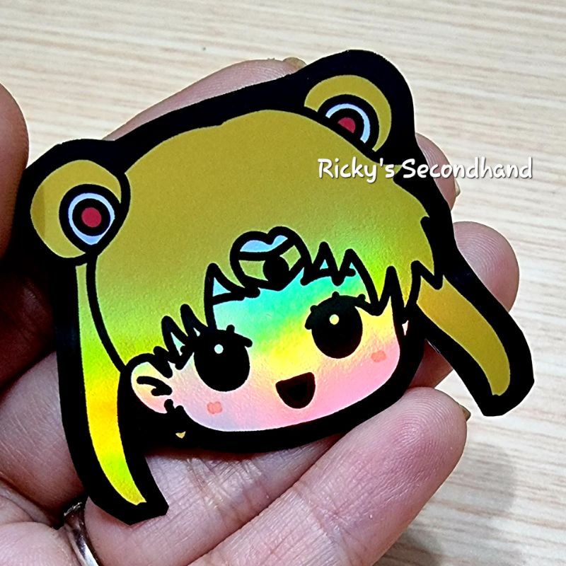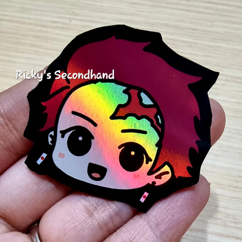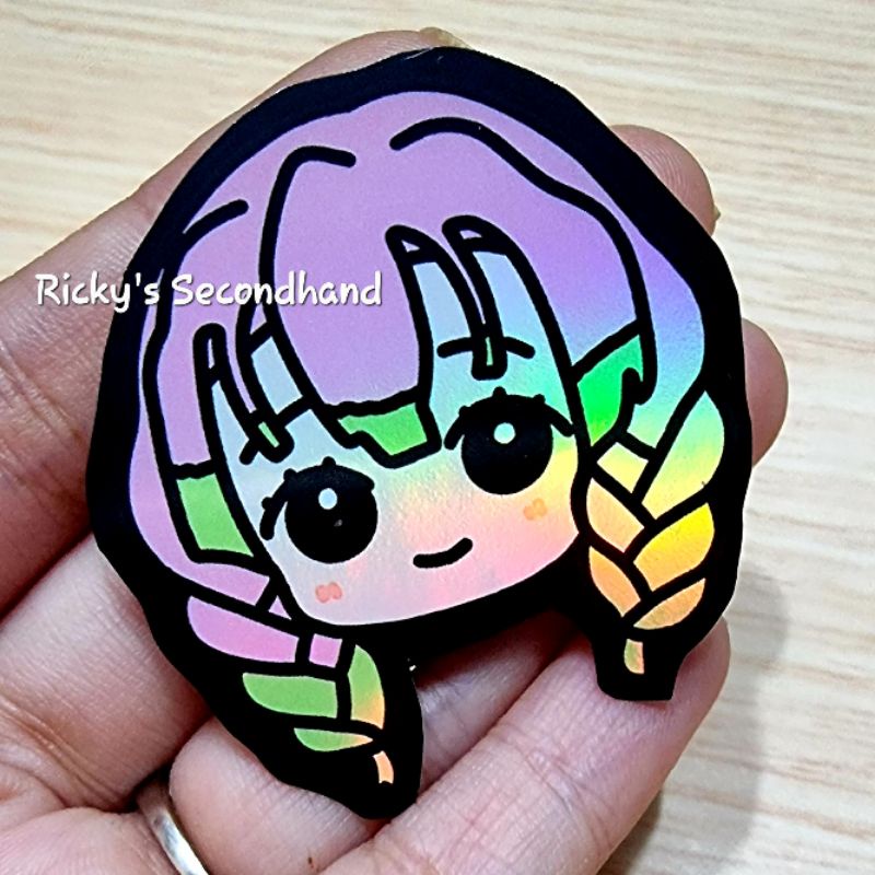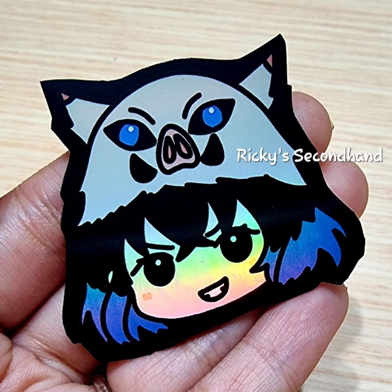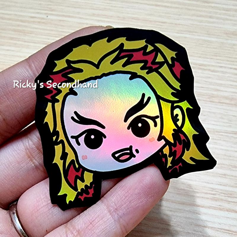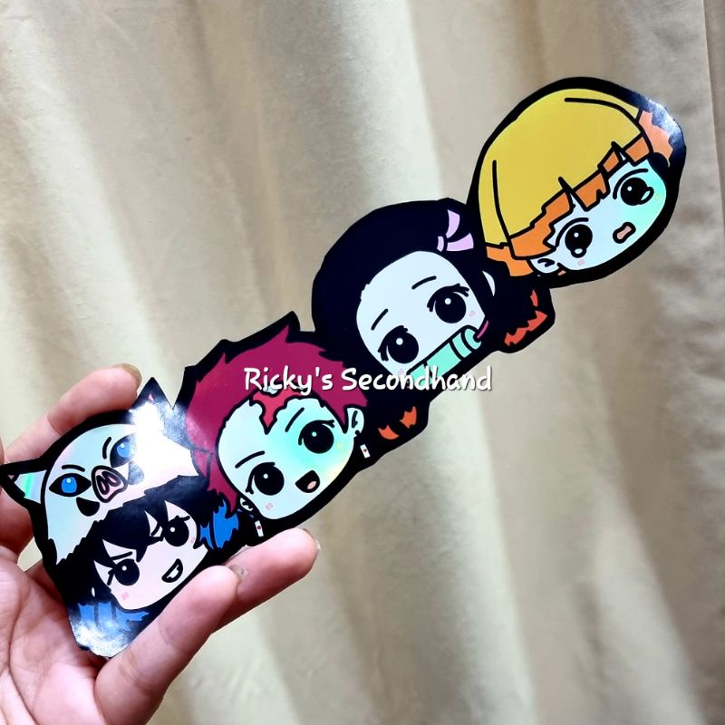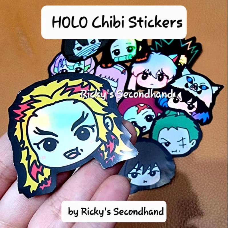 Holo Anime Chibi Stickers by Ricky's Secondhand - Waterproof Anti Air Stiker Hologram Holographic Sticker Demon Slayer Rengoku Mitsuri Iguro Nezuko Inuyasha Goku Inosuke Zoro Tanjiro Zenitsu Todoroki Zero Two Killua Gon Sailor Moon Giyuu HxH One Piece