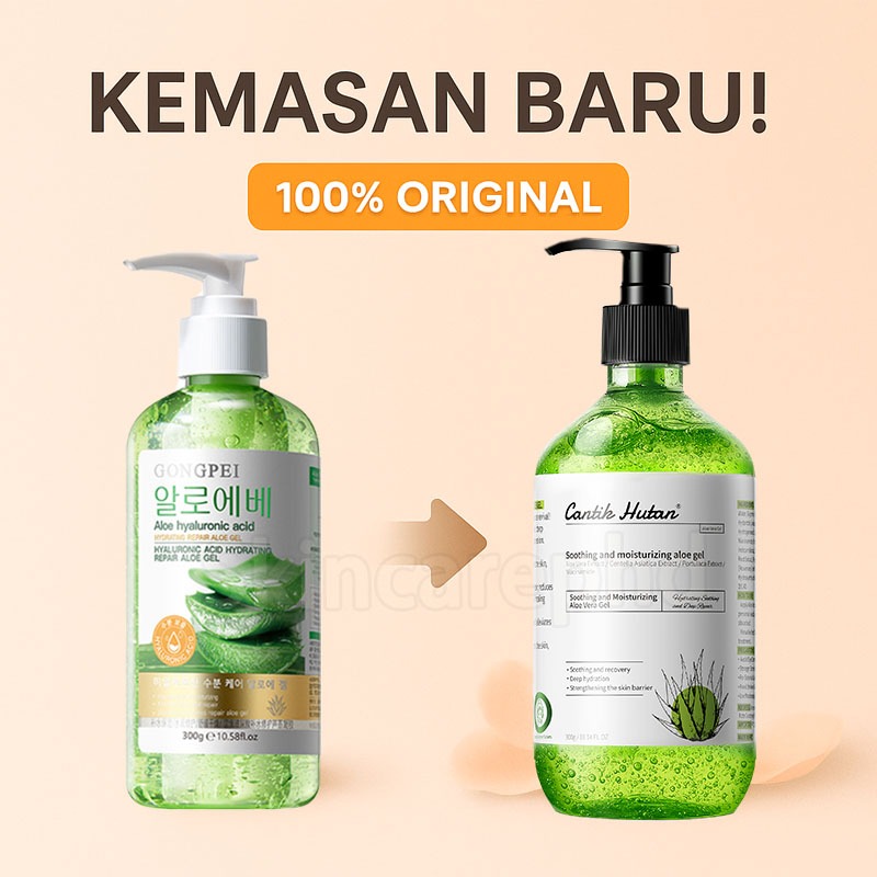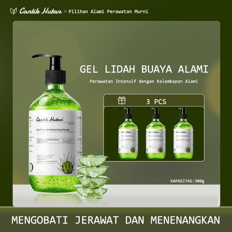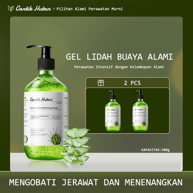 Cantik Hutan Aloe Vera Gel 300ml Mencerahkan Melembapkan Perbaiki Bekas Jerawat dan Kulit Terbakar Matahari BPOM