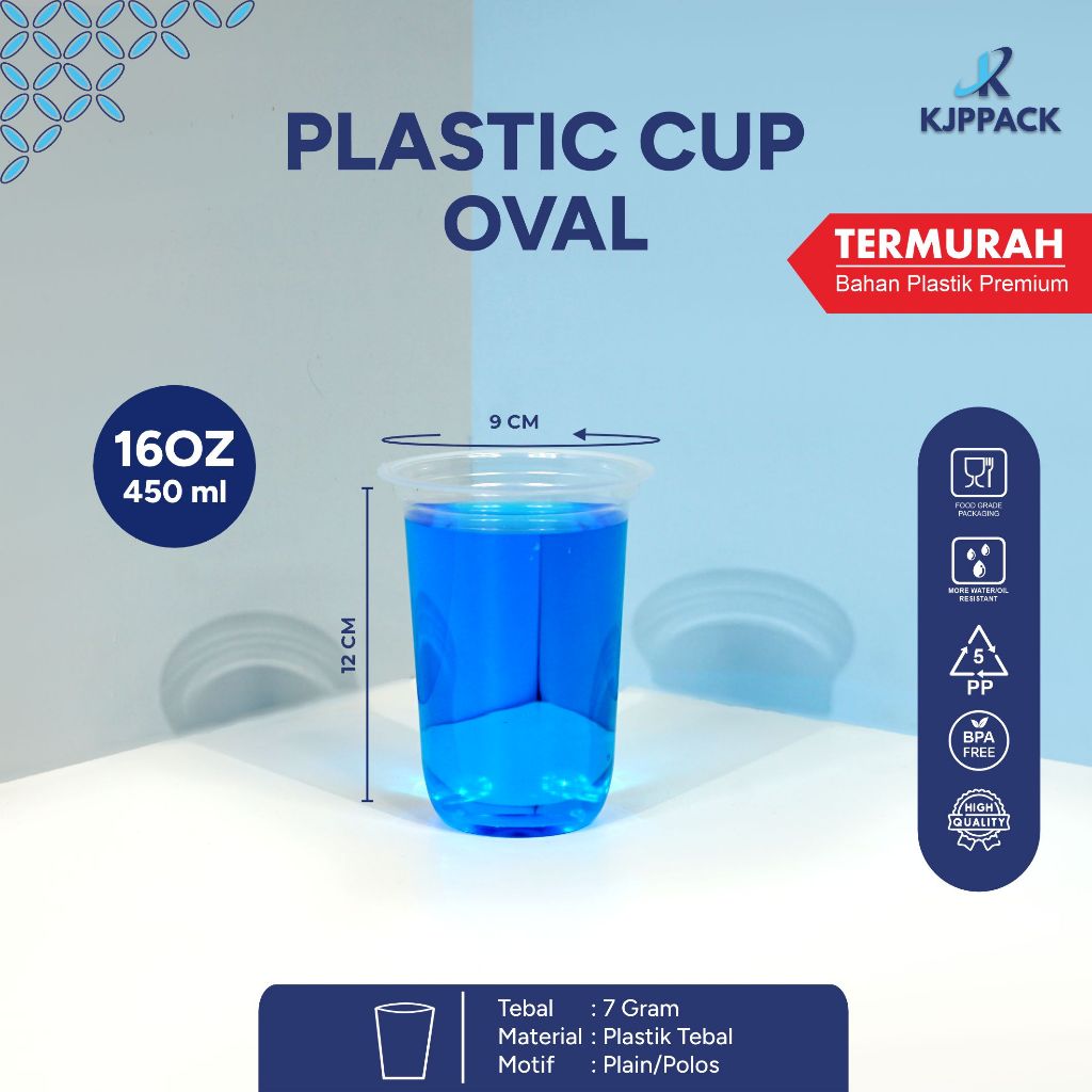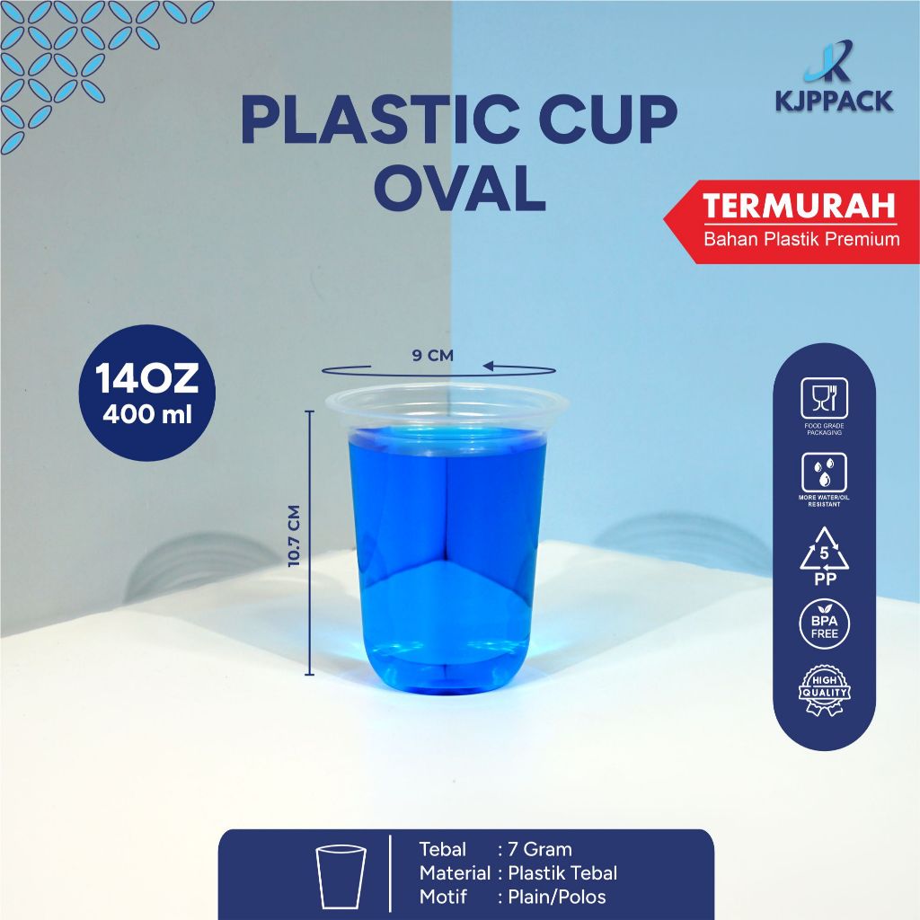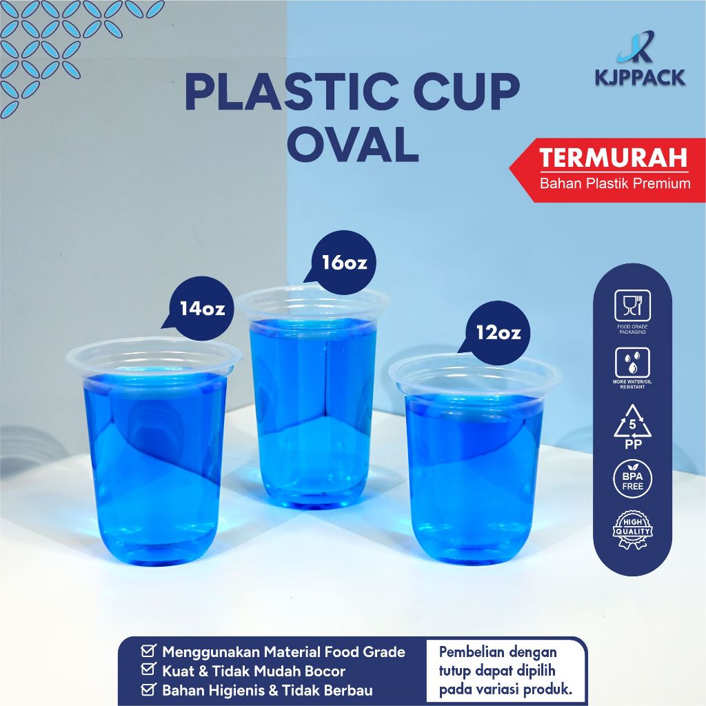 KJPPACK Plastic Cup Oval Bening 12OZ/14OZ/16OZ Tutup PET | Gelas Plastik untuk Minuman Kekinian