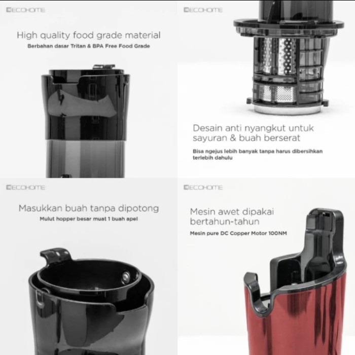 Ecohome Slow Juicer ESJ-999 Cold Press 65RPM Mesin Jus Buah Sayur Low Noise Nutrisi Tinggi