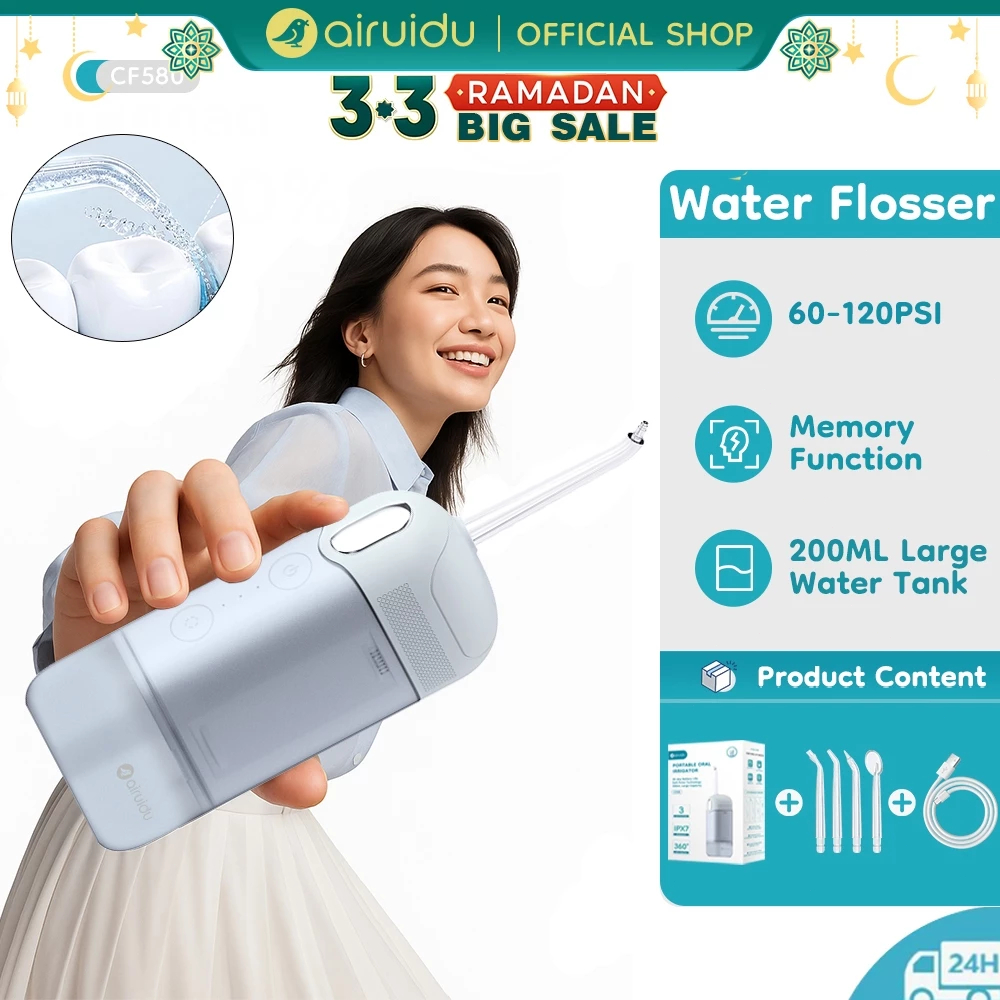 Airuidu CF580 Water Floss Gigi Oral Irrigator Dental Water 200ML Water Flosser IPX7 Waterproof Alat Pembersih Karang Gigi Water Floss