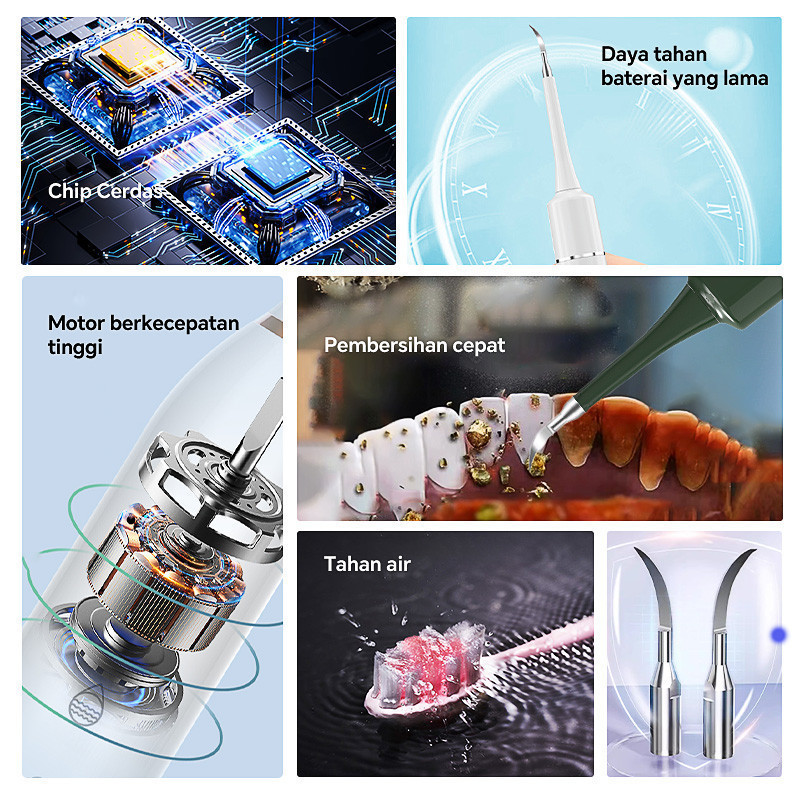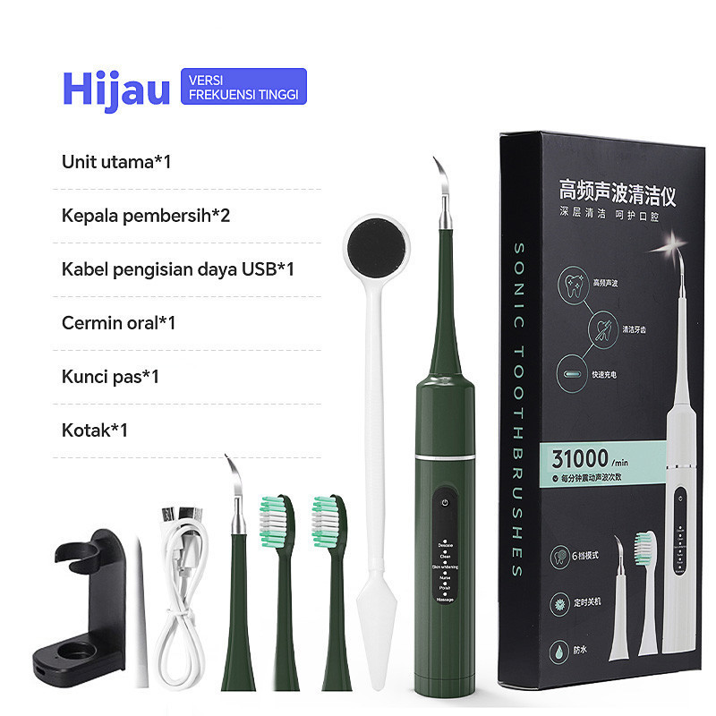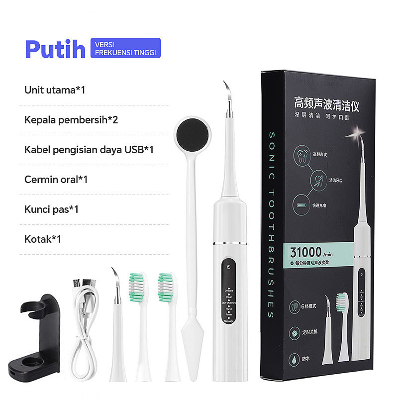 Garansi 1 Tahun-2 IN 1 Smart Ultrasonic Dental Scaling Pengukur ultrasonik Scaler Listrik Portabel Sikat Gigi Elektrik Menghilangkan karang gigi dan Plak Gigi | Electric Teeth Cleaner/Toothbrush Pemutih Gigi Alat Pencegah Karang Gigi