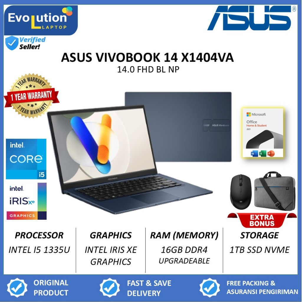 Laptop Asus Vivobook 14 X1404VA Intel Core i5 1355U 16GB 1TB SSD 14.0 FHD NP WIN11HOME + OFFICE