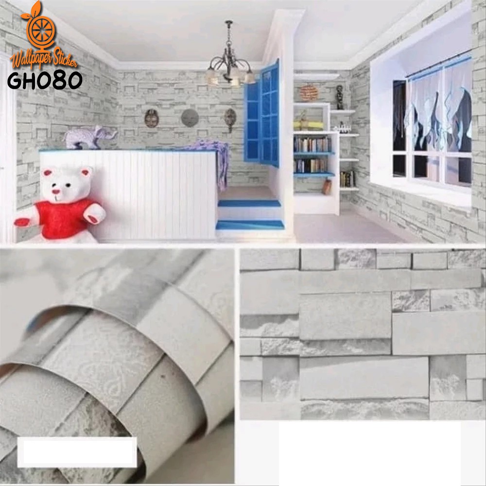 Home Wallpaper Dinding | Wallpaper Tembok | Wallpaper Stiker Dinding Batu Alam Abu 45cm x 10M