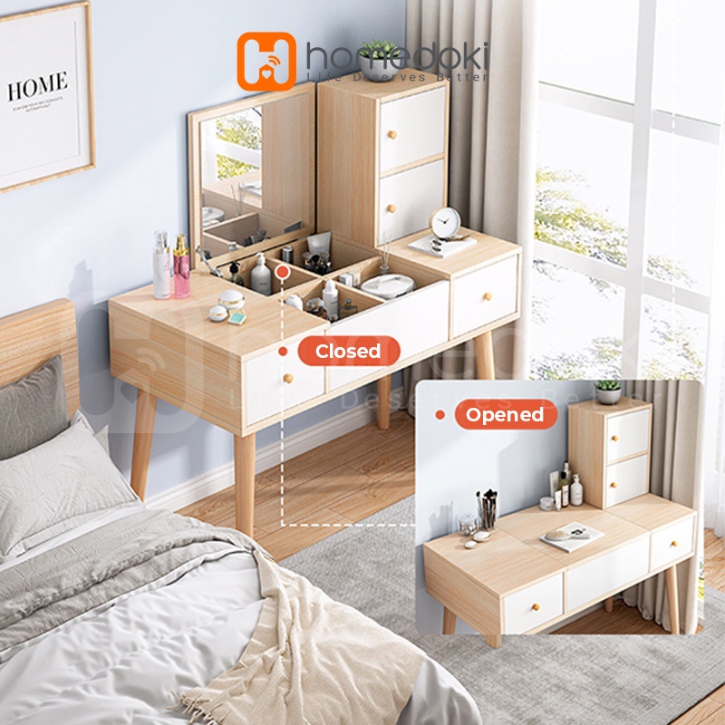 Homedoki Meja Rias Minimalis/Meja Rias Aesthetic/Meja rias Kayu/Meja Rias/Meja Rias Sliding