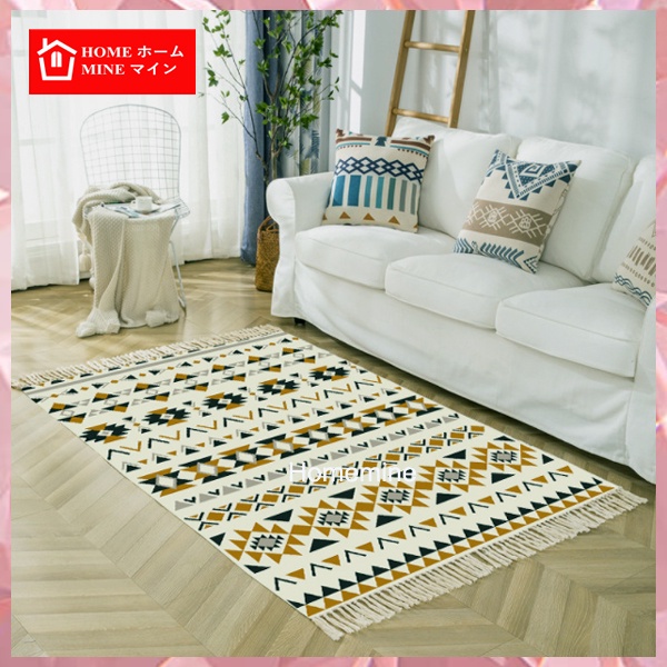 Homemine Karpet Lantai Bohemian Karpet Tenun Tassel Karpet Minimalis Modern
