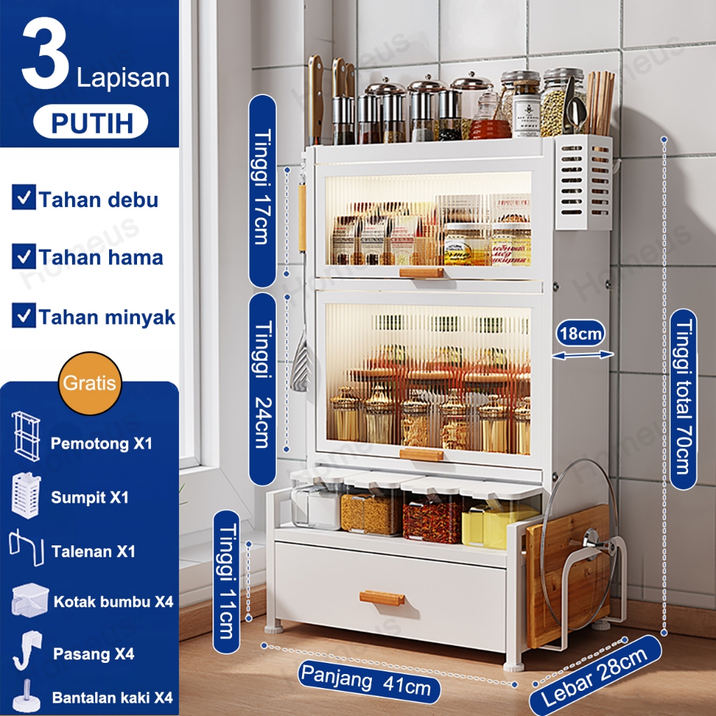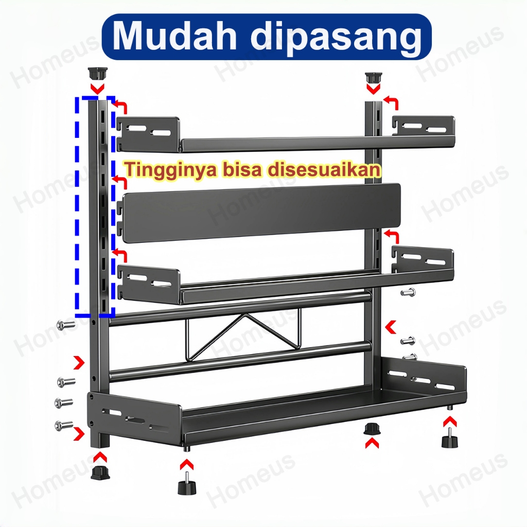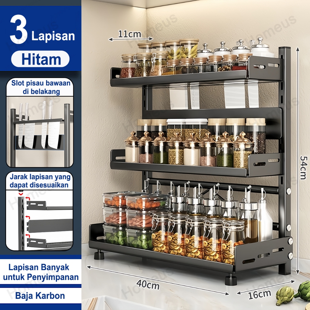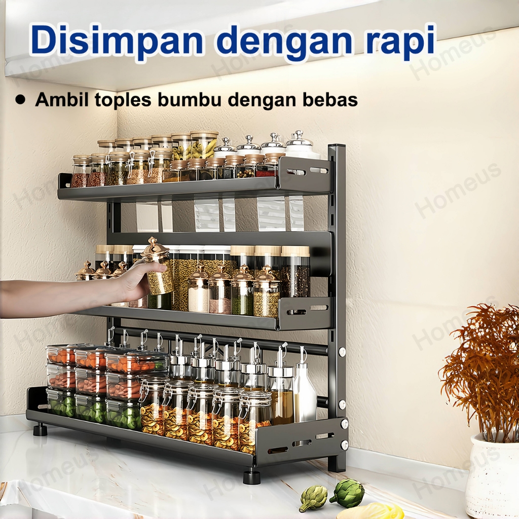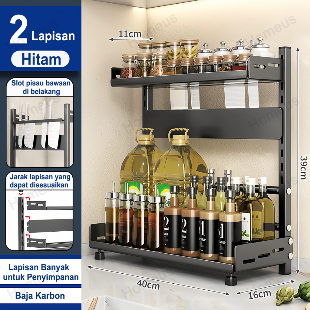 Homeus Rak Bumbu Dapur Stainless Steel Rak Bumbu Rak Dapur Serbaguna Rak Botol Bumbu (2/3 Tingkat)