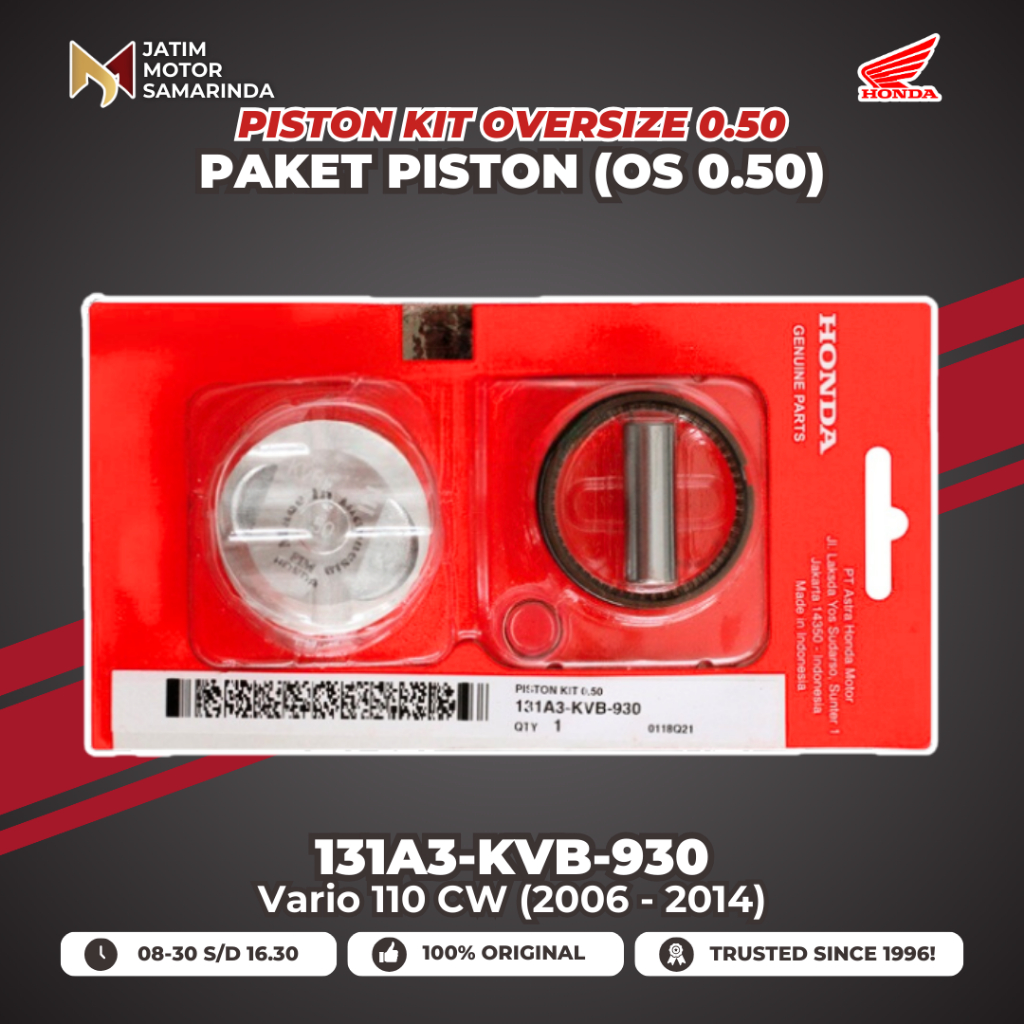 Honda AHM Piston Kit 131A3-KVB-930 KVB OS Oversize 0.50 50 Vario 110 CW (2006 - 2014) Genuine Parts Original Ready Semua Motor