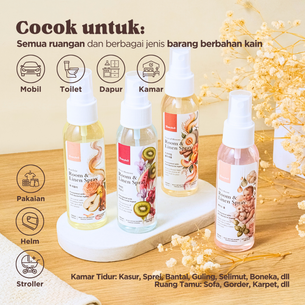 Honeybell - Room & Linen Spray Anti Bakteri 100ml | Anti Bacterial | Pengharum Kain Pewangi Ruangan