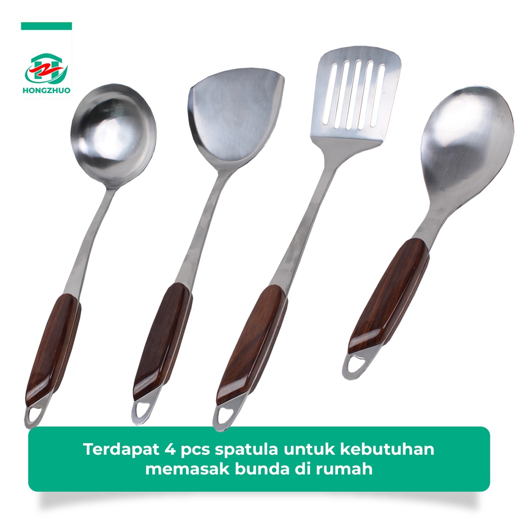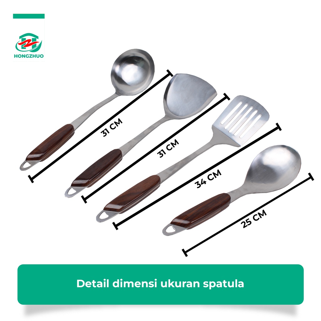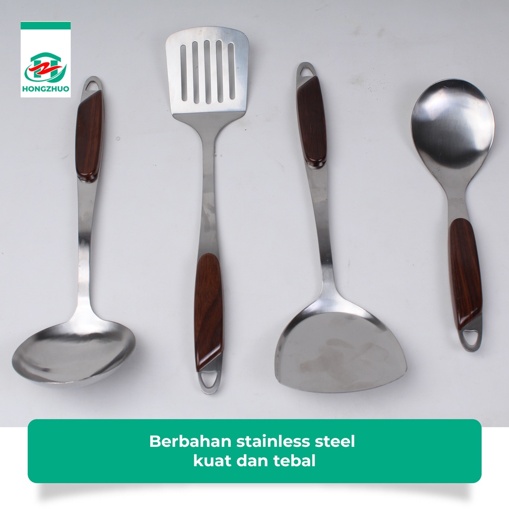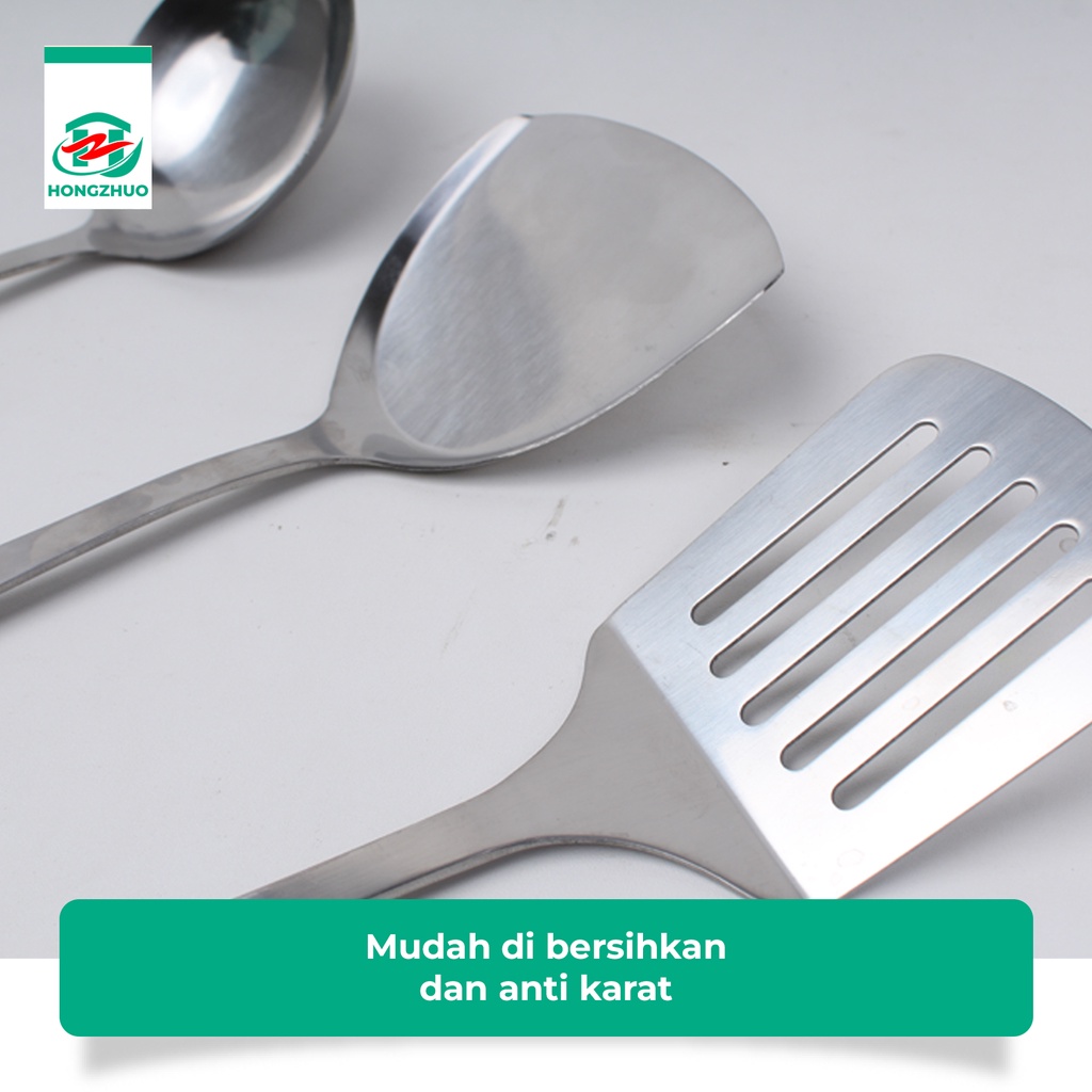 Hongzhuo Sodet Stainless Steel Spatula Sutil Susuk Penggorengan Centong Sayur Sendok Sayur Tebal Anti Panas
