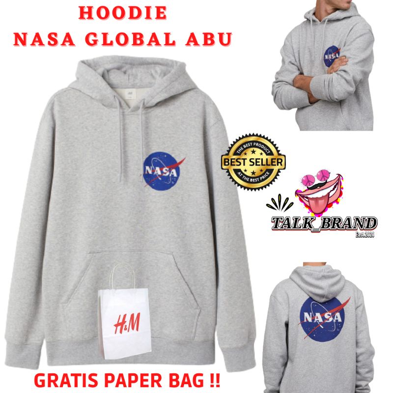 TalkBrand - Hoodie HM Nasa global abu pria wanita ful tag