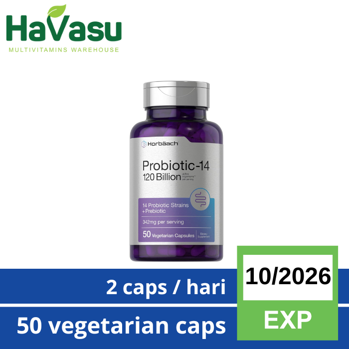 Horbaach Probiotic-14 50 or 120 Billion CFU 342 mg 14 Strains 50bn or 120bn CFUs Vegetarian Capsules