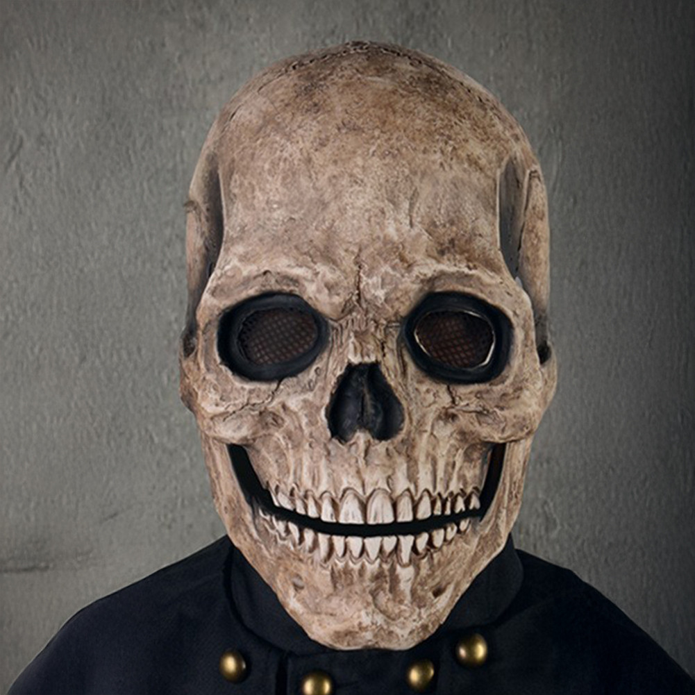 Horror Glowing Halloween Skull Mask Green Eyes Skull Latex Mask Animated Moving Jaw Skull Realistic