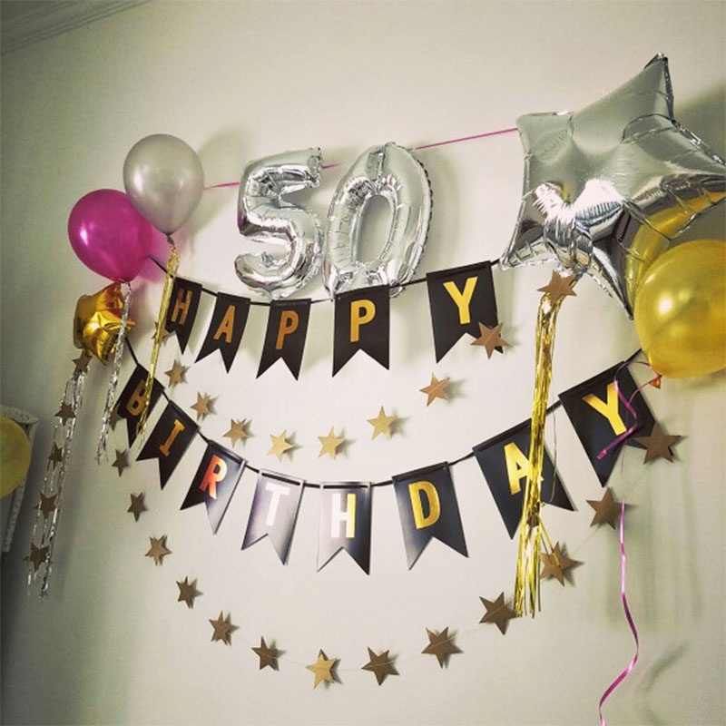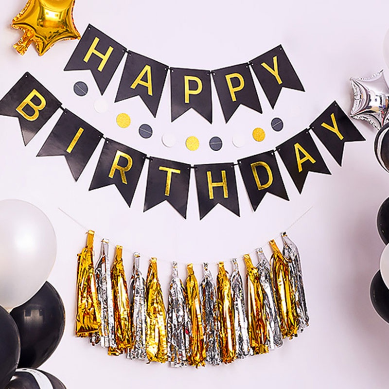 Hot Emas Fishtail Selamat Ulang Tahun Tarik Bendera Huruf Anak-anak Pesta Ulang Tahun Banner Dekorasi G