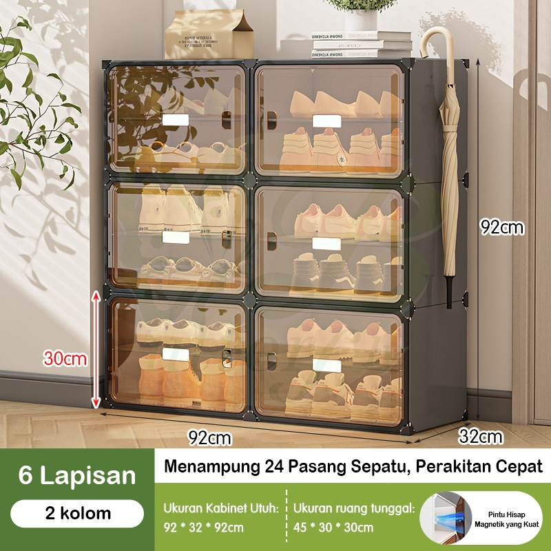 Hot Sale-Rak Sepatu Tertutup 6-10 Slot - Lemari Sepatu Transparan Anti Debu untuk Penyimpanan Sepatu dan Tas di Rumah