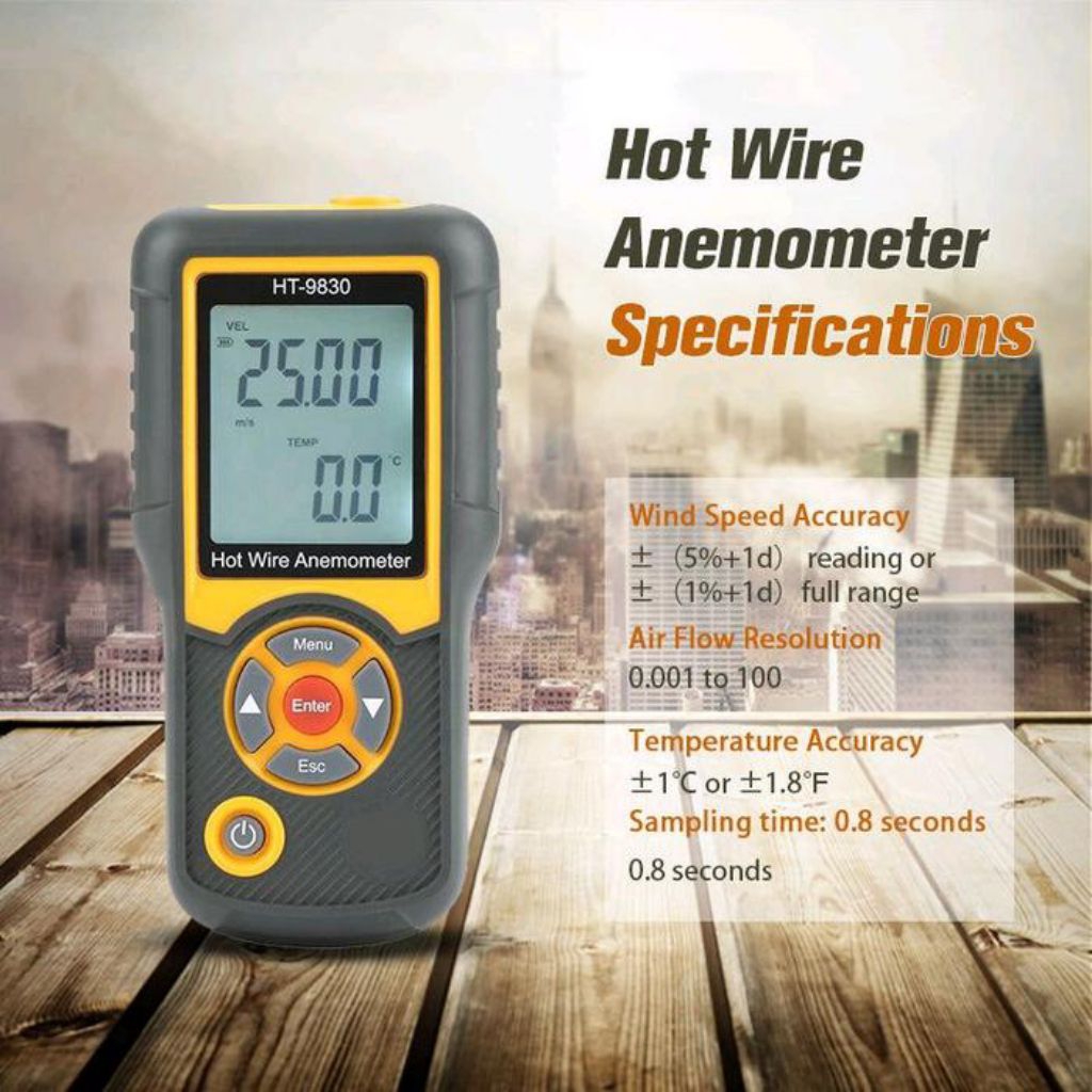 Hot Wire Anemometer HTI HT-9830 Thermal Wind Speed Flow Meter HT9830